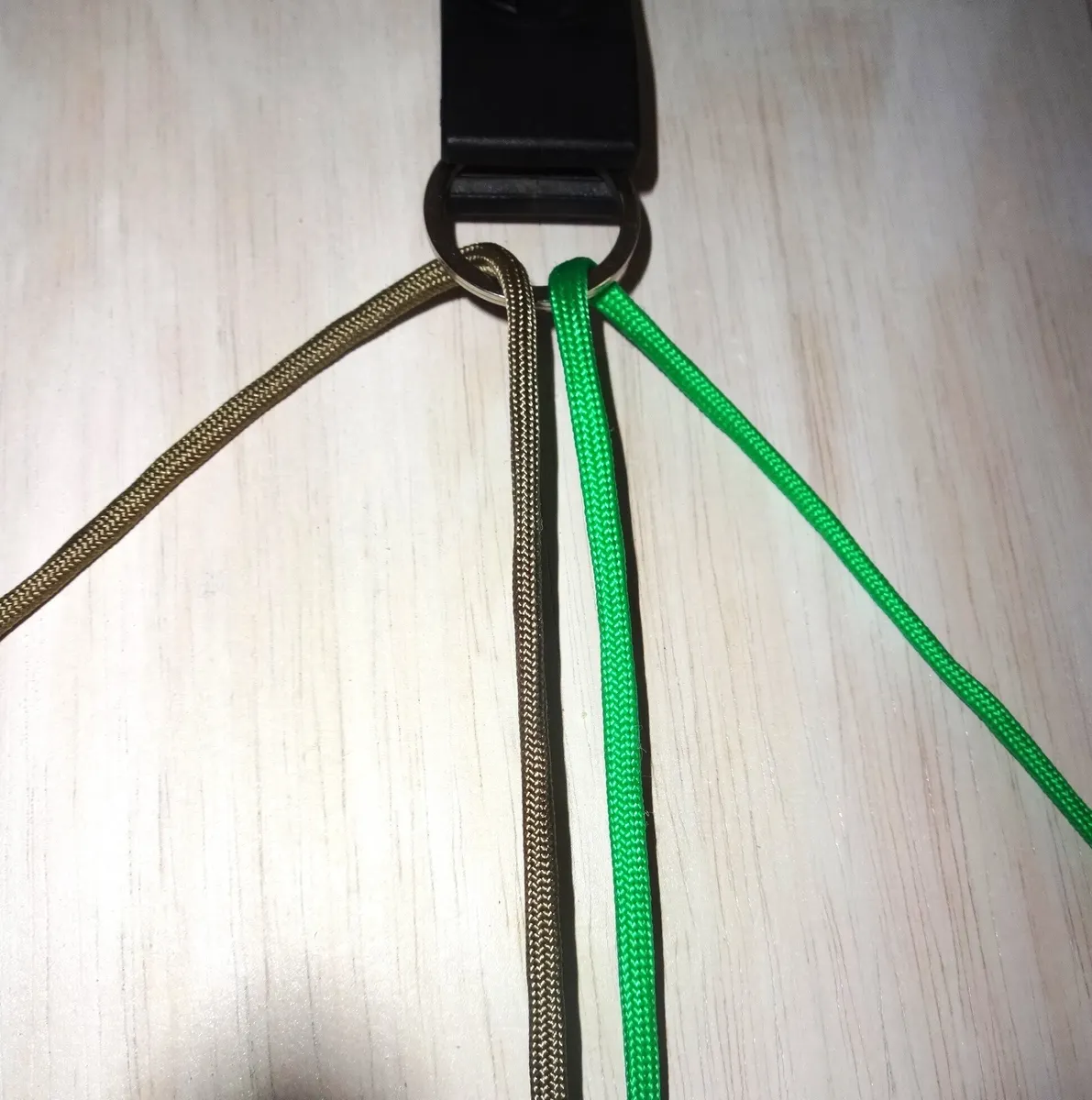↓ 各色1.5m程 図の様に通します。 軸側は下で固定すると編み易いです。