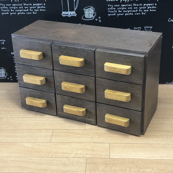 引き出し9個(3列×3段)のキャビネット