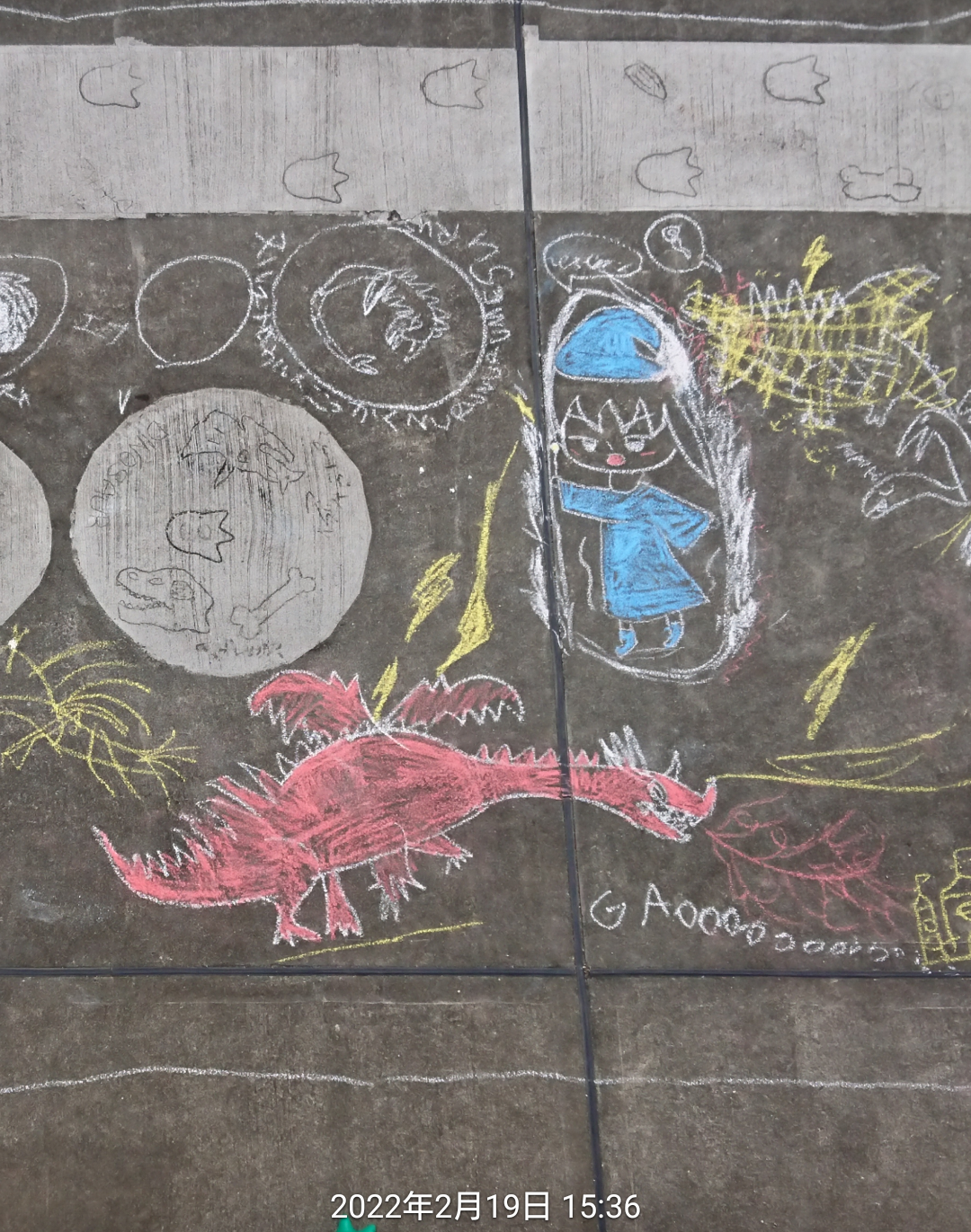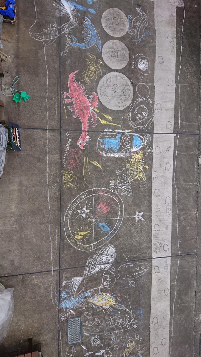 トップ > その他 > チョークで落書き Tagさん 2022/02/19 16:14 チョークで落書き チョークを子ども達👧🧒に渡したら 庭に壮大な落書きが… 2階から写真を採っても1枚に収まりません😅💦 なにやらこの落書きには 深いストーリーがあるそうです。 でも語ると3時間は掛かるそうで、 丁重にお断りしてみました(笑) 今日はこれから雨予報なので明日には消えちゃうかな🙄 画伯達はとても作品に 満足されたようです🎵👧🧒 いいね 共有する 共有する X LINE リンクをコピー コメントする 4 件の返信 (新着順) ミュートしたユーザーの投稿です。 投稿を表示 べるん 2022/02/19 19:45 お子さんにとって落書きは、楽しくて仕方ありませんね🎵 いいね 返信する ミュートしたユーザーの投稿です。 投稿を表示 Tagさん 2022/02/20 07:55 べるんさん✨ 今朝には雨でキレイさっぱり消えてましたが😅次は何を描くか楽しみにしてました‼️ いいね 返信する ミュートしたユーザーの投稿です。 投稿を表示 たいたいばぁー 2022/02/19 19:14 子どもの絵って、すごく味があるんだわ😍 紙に描いたものは縮小コピーしたりして置いてますが、さすがにお外の絵は…😅 雨で消えちゃうのもったいない💦 いいね 返信する ミュートしたユーザーの投稿です。 投稿を表示 Tagさん 2022/02/20 07:58 たいたいばぁーさん✨ 雨で消えてはしまいましたが💦😅 本人達はまた次描くの楽しみにしてました カラーのチョークが もうないから買ってきて❗ だそうです(笑) いいね 返信する ミュートしたユーザーの投稿です。 投稿を表示 うみる 2022/02/19 17:26 とても上手ですね✨ でも3時間(笑)超大作❕ GAOOOOOOO…というところもツボでした😄 いいね 返信する ミュートしたユーザーの投稿です。 投稿を表示 Tagさん 2022/02/20 08:00 うみるさん✨ 今朝には雨ですっかり消えてしまって 魔方陣が~‼️って叫んでました🤣 また雨が止んで庭が乾いたらやるみたいですよ(笑) いいね 返信する ミュートしたユーザーの投稿です。 投稿を表示 はるかのん 2022/02/19 17:09 かわいい〜ですね😘 恐竜🦕🦖が好きなんですね❣️ ウチの4歳の孫も大すきで 名前教えてもらってます😅 せっかくの力作 雨で消えたらかわいそう🤣 いいね 返信する ミュートしたユーザーの投稿です。 投稿を表示 Tagさん 2022/02/20 08:07 はるかのんさん✨ うちの🧒も2歳ごろからの恐竜好きで しりとりをすると恐竜の名前で答えが来るので だいたい「ス」でネタ切れして終了します😂 いいね 返信する