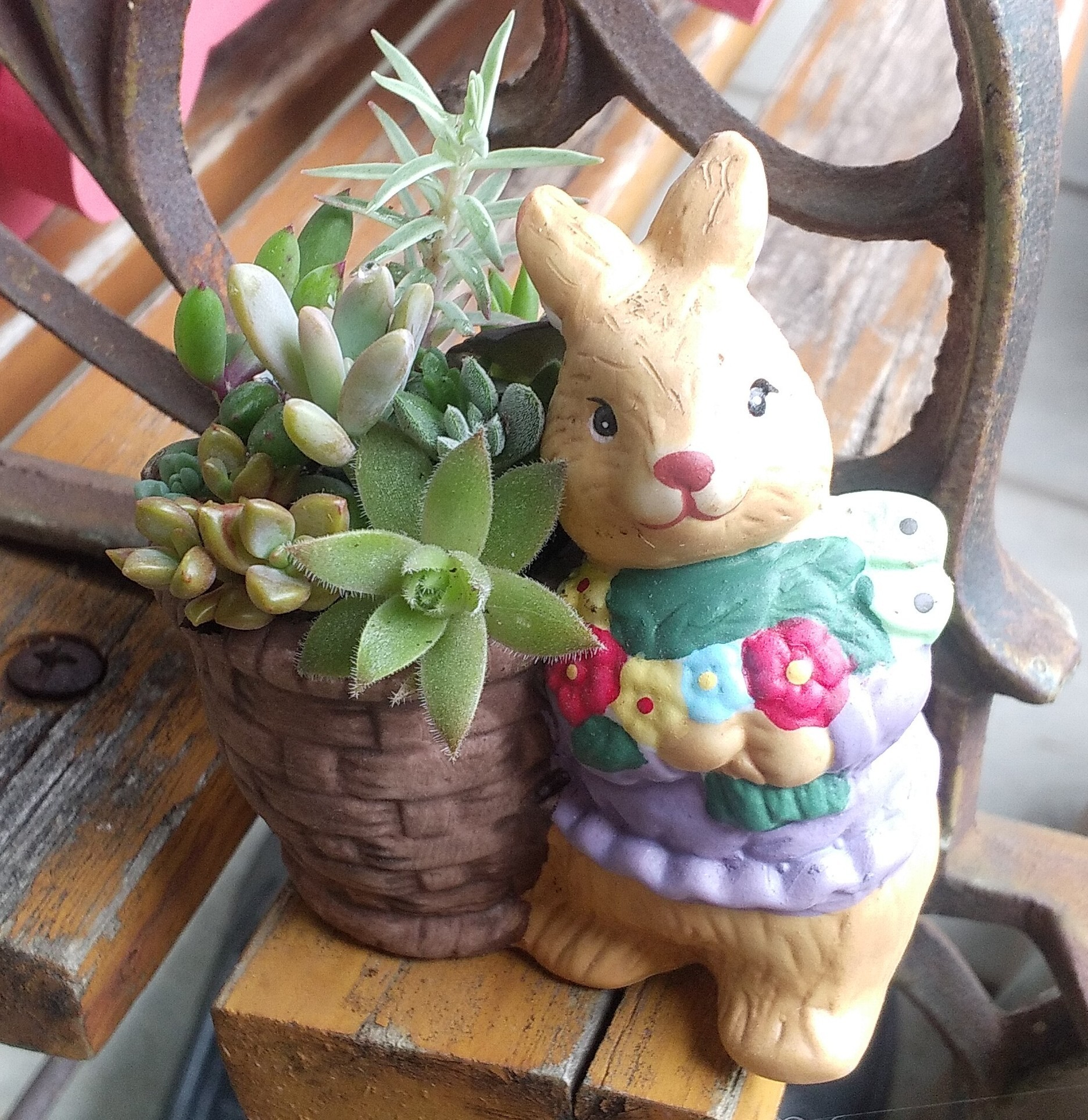 まるで、ウサギさんが多肉の寄せ植えを運んできてくれたかのよう✨