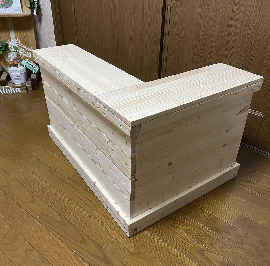 トップ > その他 > コーナースタンド ハリ子 2021/12/13 04:58 コーナースタンド ALOHA こちらは二つのソファーを コーナーソファーにした時に、 何か物を入れたいな…と考えて ソファーの片面をピッタリあて 反対側は物が入るように… 右下はコンセントを隠すために それぞれの置き場所を決めて 工夫がしてあります🤗 こちら側は覗かないと見えない場所なんで かなり適当ですが🤗 物も入り上にも物が置けて重宝しております。 いいね 共有する 共有する X LINE リンクをコピー コメントする 2 件の返信 (新着順) ミュートしたユーザーの投稿です。 投稿を表示 28`sガーデン 2021/12/13 17:05 アイデアがすごいですね! 作品だけをみた時は?と思ってしまいましたが、使用例を見てびっくりしました。 ちょっと物を置いたりとても便利でおしゃれですね。 素敵です❣️ いいね 返信する ミュートしたユーザーの投稿です。 投稿を表示 ハリ子 2021/12/13 17:13 28`sガーデン さん 見た目は分かりにくいですね。笑 これ本当に色々と収納ができて 今ではないと大変なことになります🤗 The 隠れんぼ収納✨ いいね 返信する ミュートしたユーザーの投稿です。 投稿を表示 きょろっち 2021/12/13 08:04 こんにちは。 コーナースタンド、レンガのアレンジが良いですね。 そして、何気にティッシュカバーがとってもかわいい。 その横のおうちも収納ですか? いいね 返信する ミュートしたユーザーの投稿です。 投稿を表示 ハリ子 2021/12/13 09:32 きょろっちさん。 レンガは前に投稿した鉢カバーなんですよ。 お家シリーズはサリューの物で、 ティッシュやリモコンスタンド、小物BOXで 安かったので購入しました! いいね 返信する