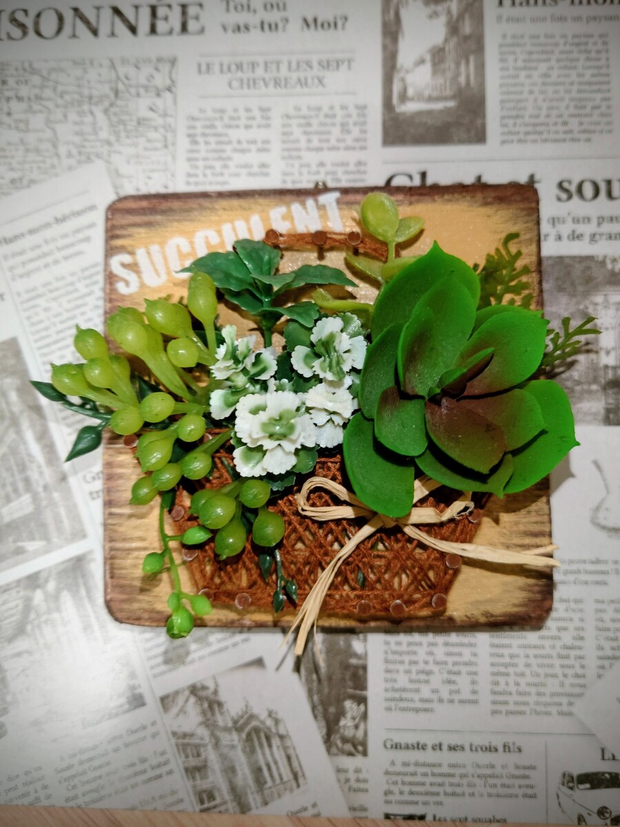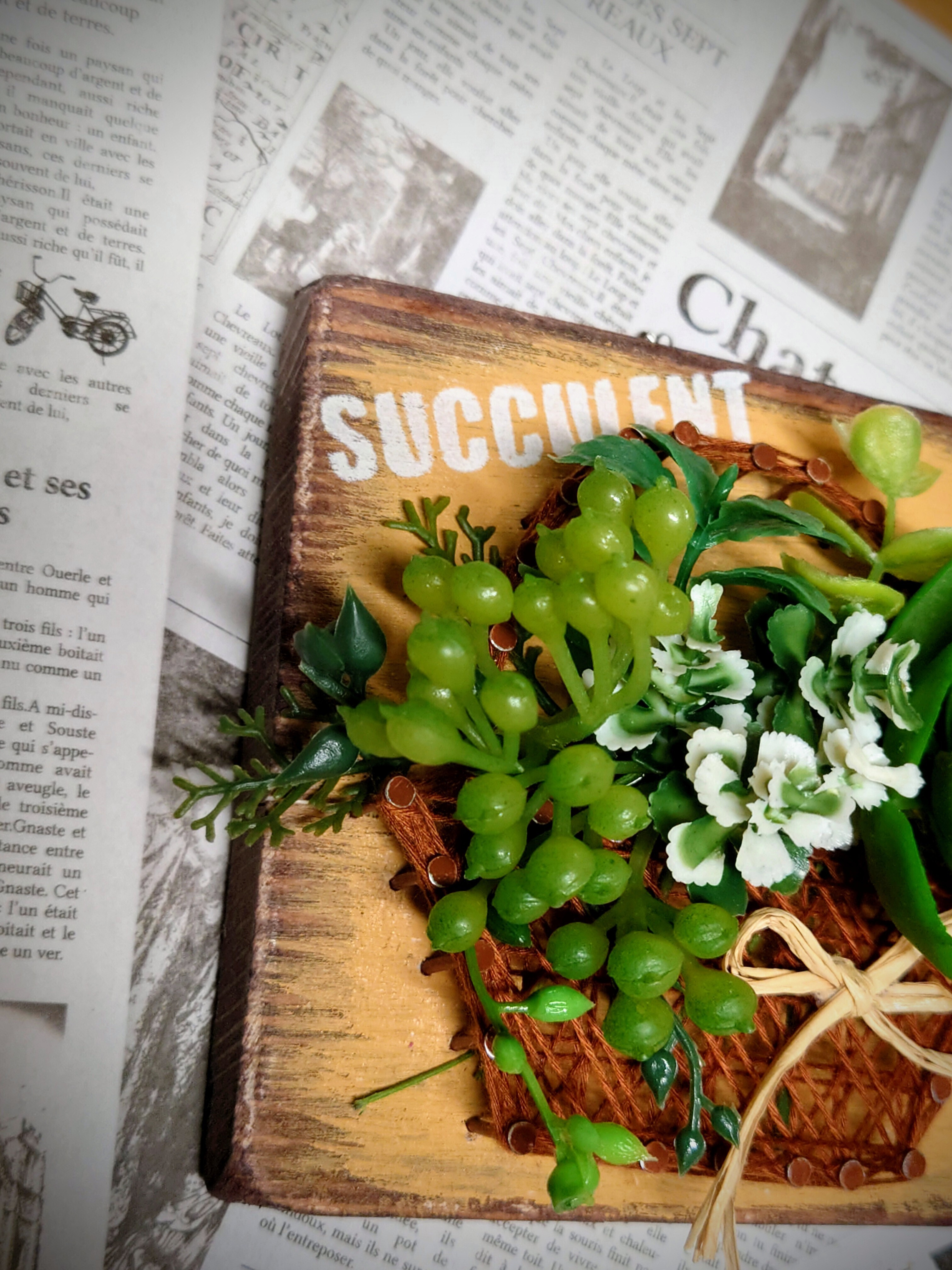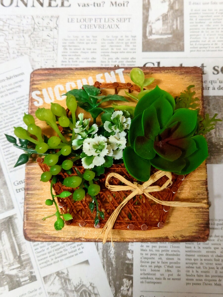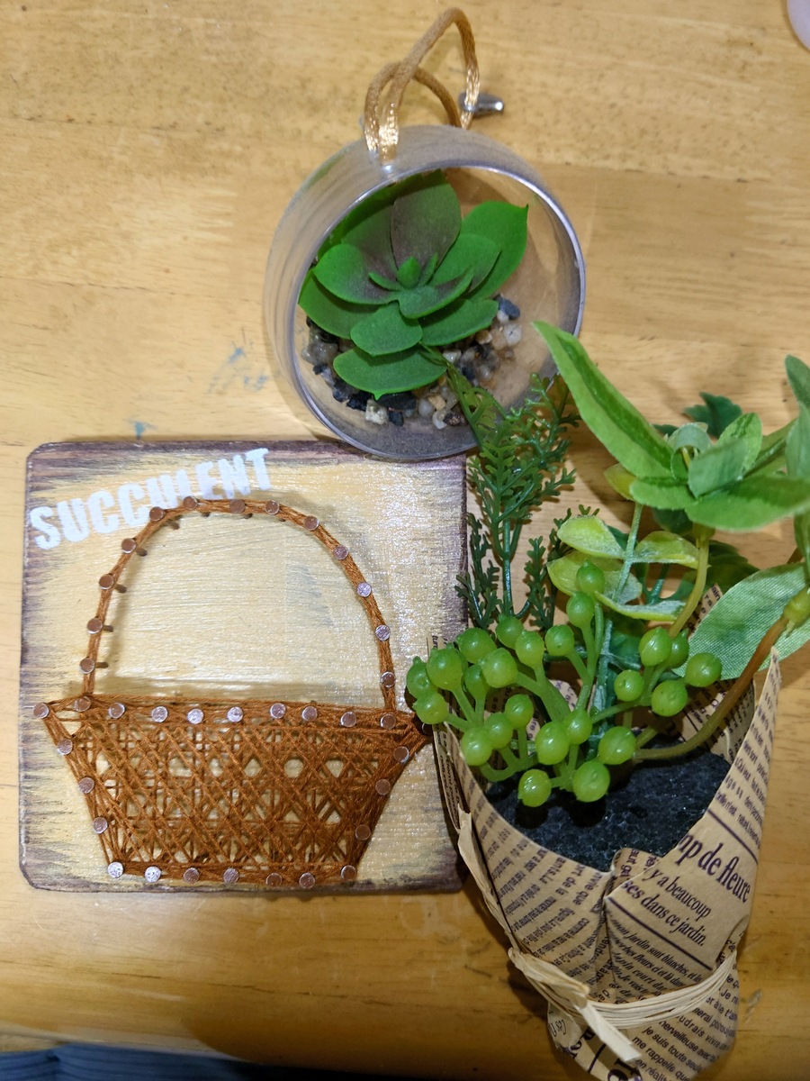 100均のフェイクグリーンとガチャの多肉とか手持ちにあった材料使ってちまちまちまちま…