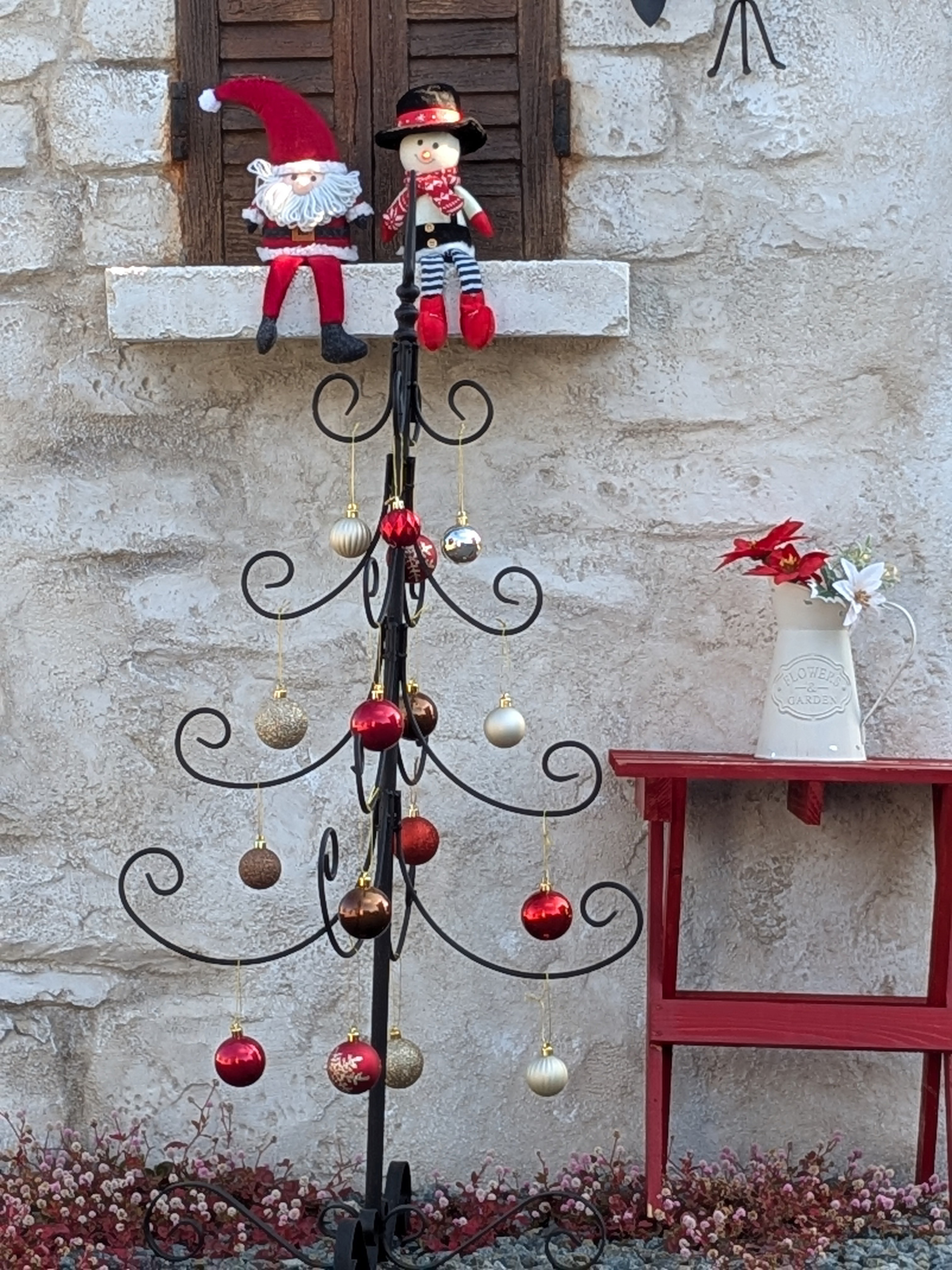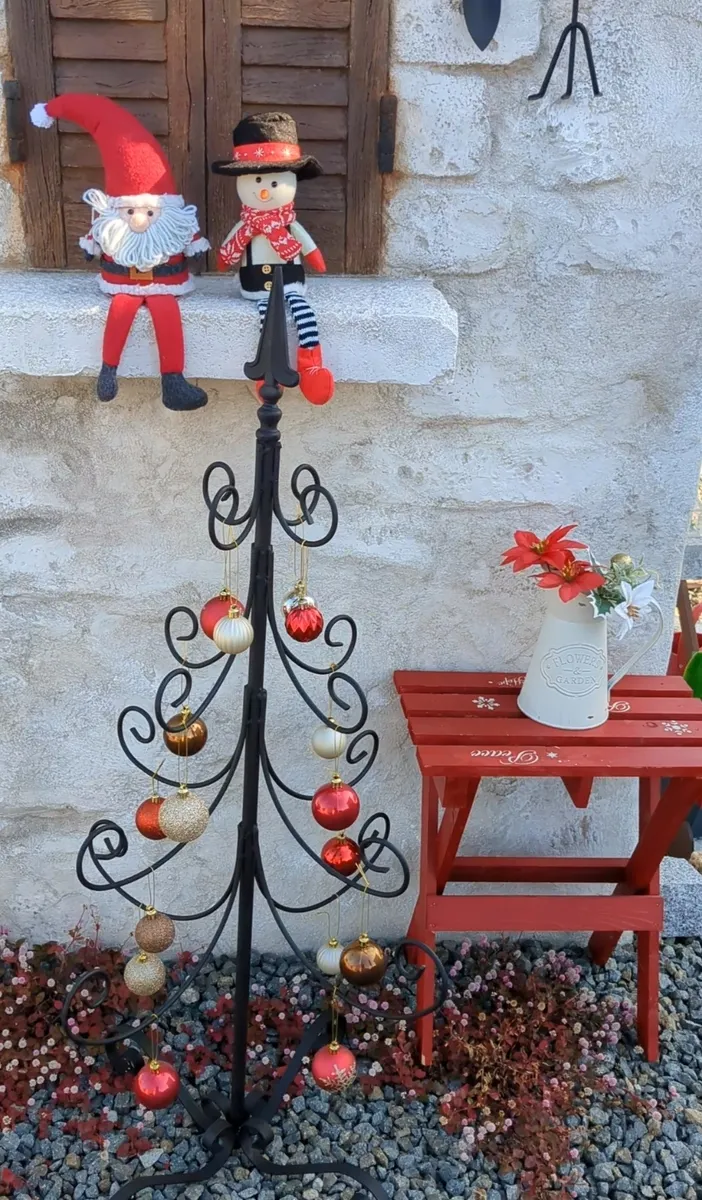 投稿を表示クリスマスの飾りつけ、とても楽しそう😊🎶キラキラのオーナメントを下げてるとき、この色どこにつけようかな?ってワクワクしますよね🎄✨赤いテーブルも白いステンシルがよく似合っていて素敵🧑🎄💕