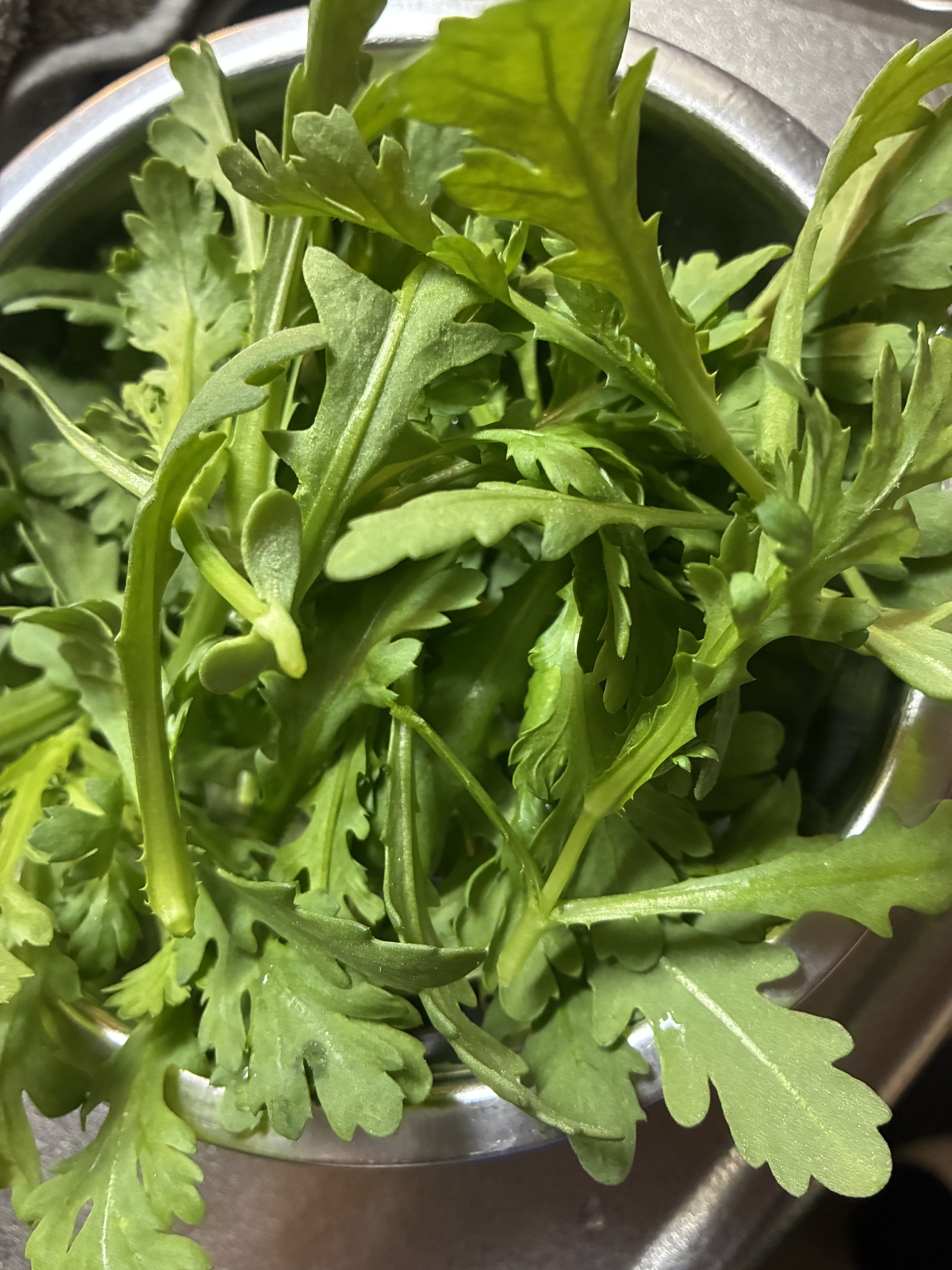 綺麗なグリーンカラーの新鮮さも、柔らかさも伝わってきます。美味しい春菊良いですね~😋