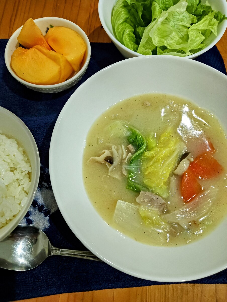 トップ > クッキング > 白菜のクリームシチュー作りました。外葉の🟢がキレイです。♥️ まっさん 2024/12/02 21:09 白菜のクリームシチュー作りました。外葉の🟢がキレイです。♥️ 昨日も使った白菜の外葉。今日は白い部分を使ってクリームシチューにしました。 白い部分は削ぎ切るように一口大にカット。しめじは食べやすいように縦に裂きます。炒めて煮込んで、ルーを入れてグツグツ。 牛乳(豆乳)を入れる位のタイミングで 外葉の緑の葉っぱ(食べやすい大きさ)投入。5分位グツグツしたら出来上がり。 野菜が高い時期、コトコト煮たら、白菜の外葉も美味しくなりました。🟢の葉っぱ、ビタミンも摂れるかなぁ💕💕💕 いいね 共有する 共有する X LINE リンクをコピー コメントする 1 件の返信 (新着順) ミュートしたユーザーの投稿です。 投稿を表示 toshi 2024/12/03 08:52 とても美味しそうですね。体温まりますね。 いいね 返信する ミュートしたユーザーの投稿です。 投稿を表示 まっさん 2024/12/03 08:57 toshi ありがとうございます。寒い日のクリームシチューで体ほこほこです。 温め直して、今日の朝食にも食べました。エネルギーチャージ完了💪 いいね 返信する ミュートしたユーザーの投稿です。 投稿を表示 toshi 2024/12/03 09:05 まっさん まっさん、ありがとうございます。何回でも食べられて良いですよね♪まさにスープストックです。 いいね 返信する ミュートしたユーザーの投稿です。 投稿を表示 まっさん 2024/12/03 09:11 toshi 確かにそうですね。朝食分、余ってて良かったです。👍 いいね 返信する