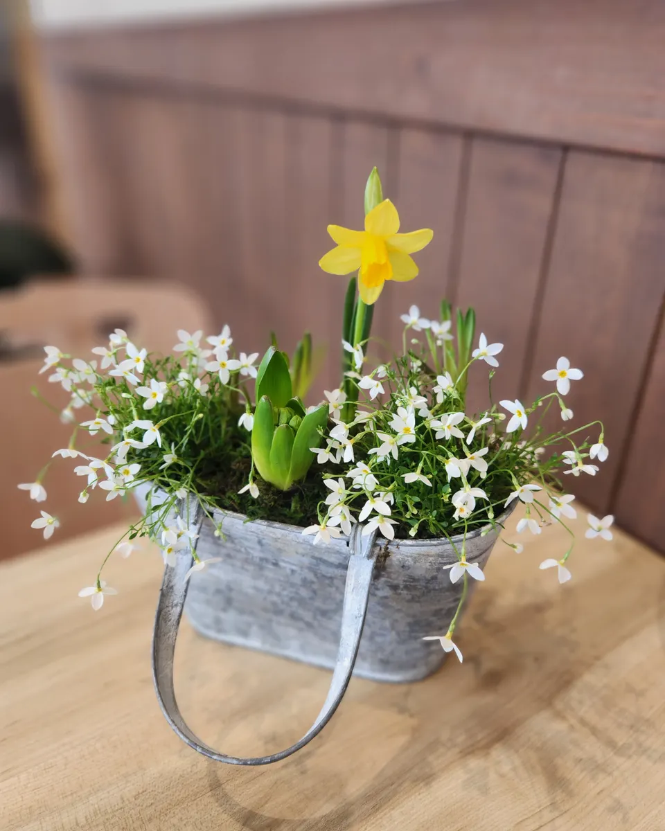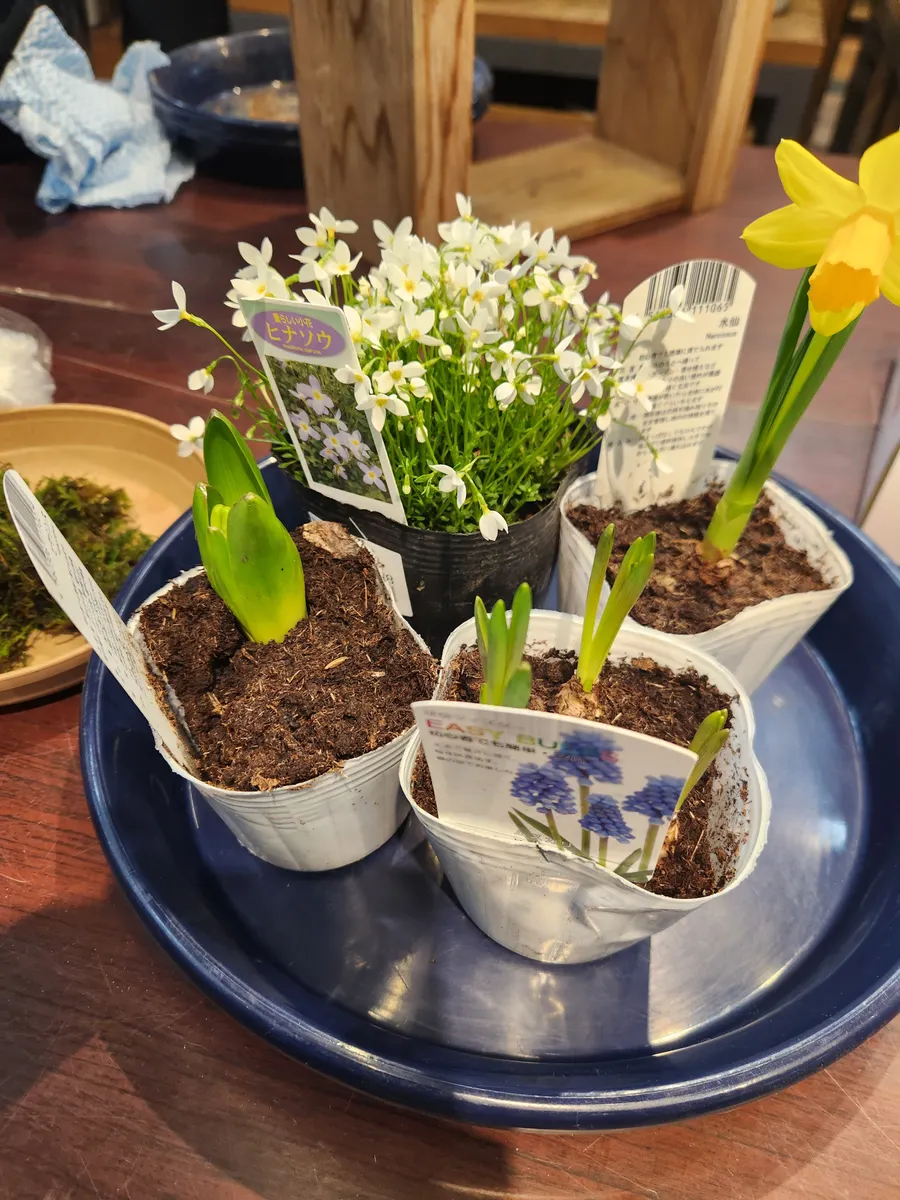 トップ > ワークショップ > その他 > 春を待つ芽出し球根のアンテーク寄せ植え カミン 2026/02/26 20:01 春を待つ芽出し球根のアンテーク寄せ植え グリーンWSで、春を待つ芽出し球根のアンテーク寄せ植え作って来ました✨ スイセン、ヒヤシンス、ムスカリ、ヒナソウ スイセンは咲いているの選びました💕 アンテークの小さなブリキ鉢にスイセンとヒヤシンスの球根が大きくて苦戦しました💦 花が咲いてくれるの待ちどうしいです🎶 先生、ご一緒した皆さんお世話なりした💖 楽しいかったです✨ いいね 共有する 共有する X LINE リンクをコピー コメントする 1 件の返信 (新着順) ミュートしたユーザーの投稿です。 投稿を表示 チコリ 2026/02/27 01:37 ブリキ鉢、何となく大きいと思ってましたが小さめなんですね! 色とりどりの花が咲くと綺麗でしょうね😍 いいね 返信する ミュートしたユーザーの投稿です。 投稿を表示 カミン 2026/02/27 05:48 チコリ ブリキ鉢小さかったですね😅 咲くのが楽しみです🎶 いいね 返信する