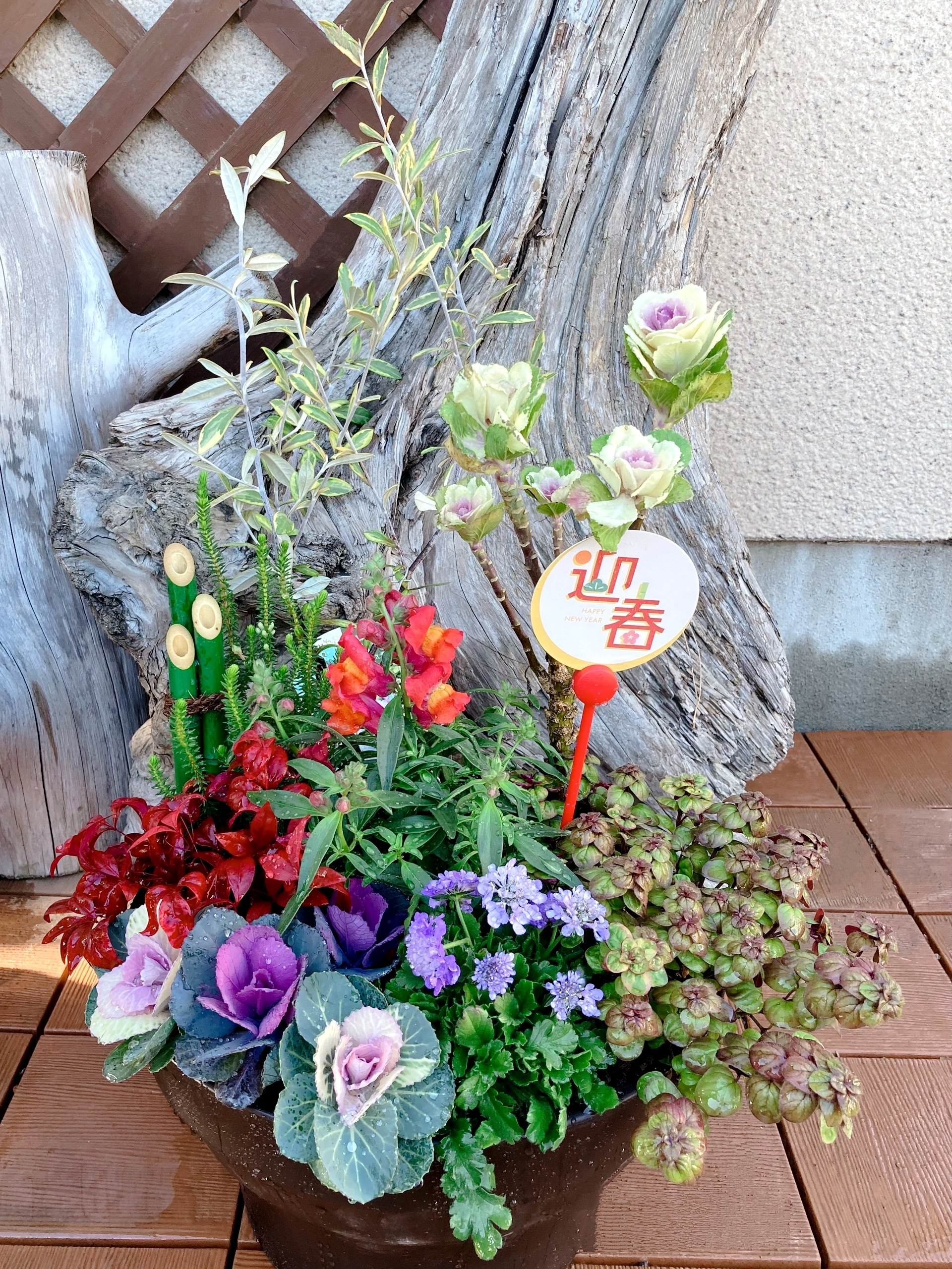 門松もはいってるし、お正月らしい寄せ植え、これは素敵です😊
