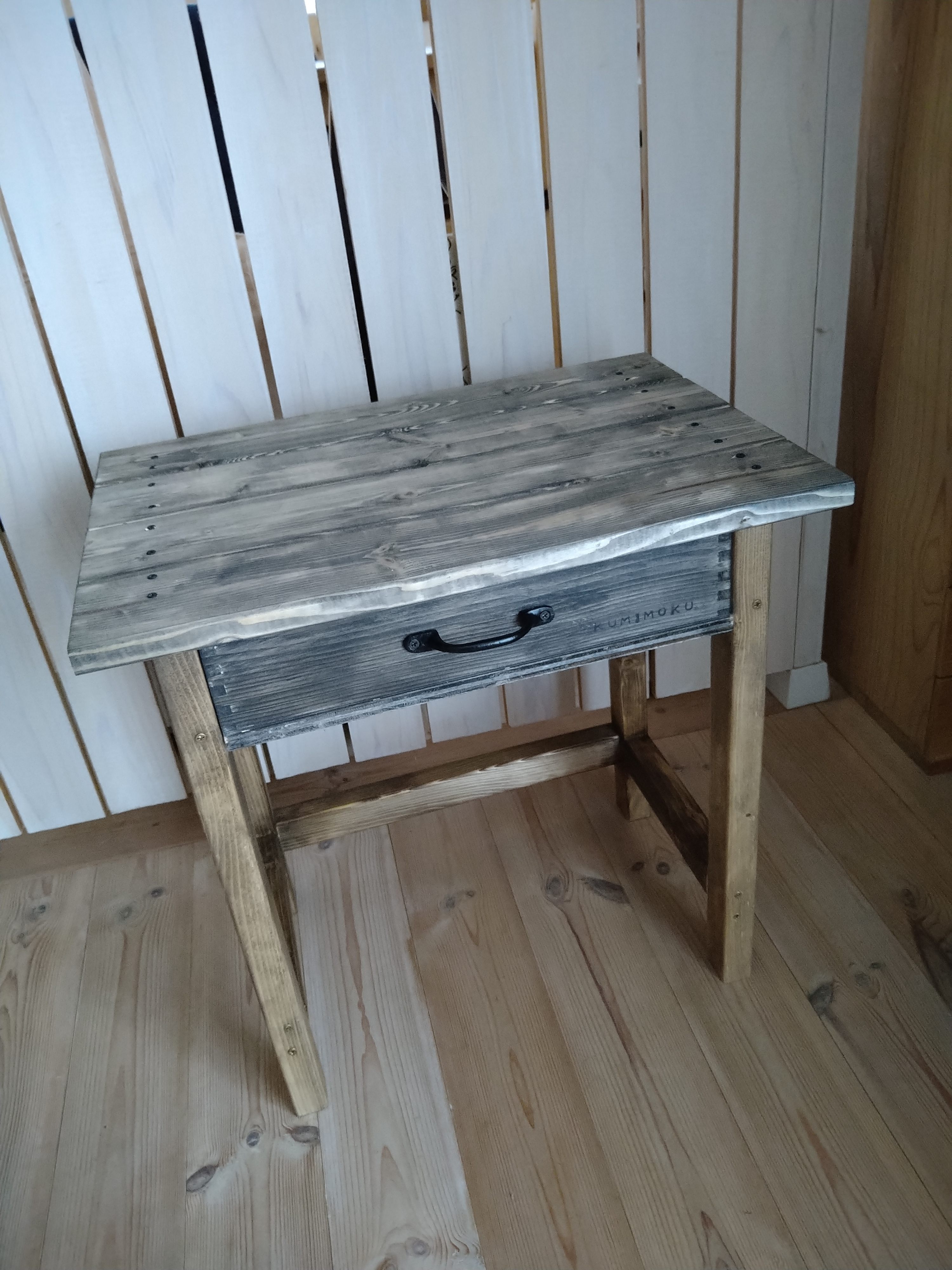 サイドテーブルの色合い、ビンテージのようでかっこいいです😆