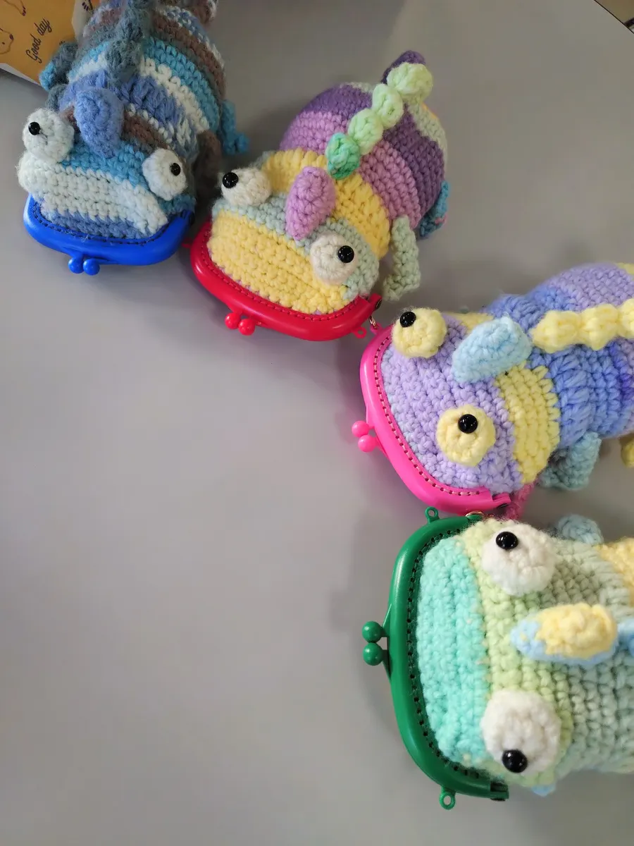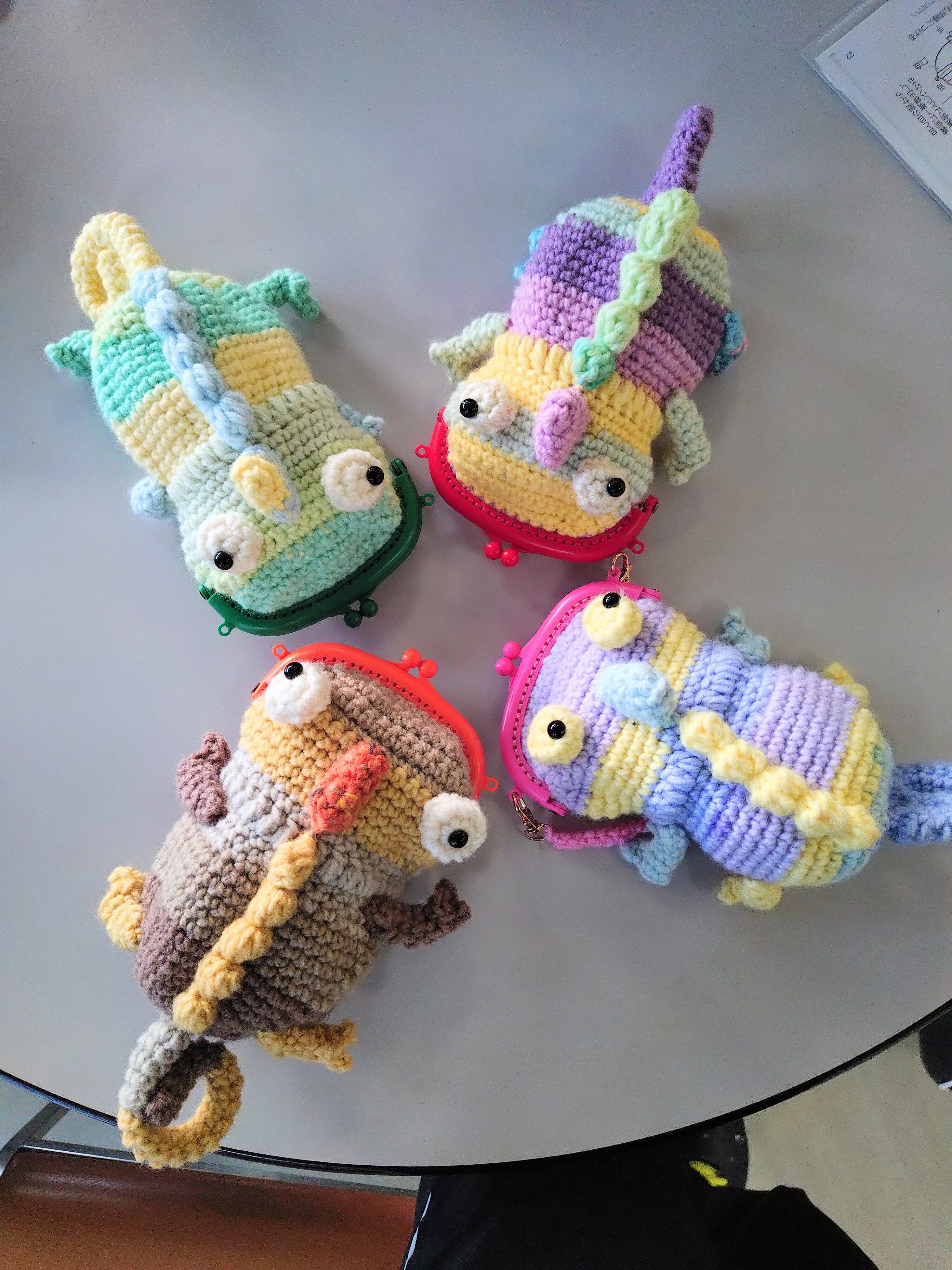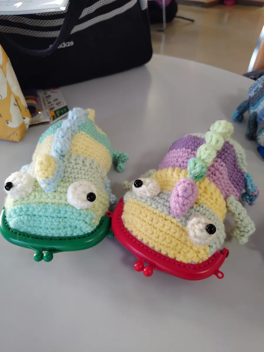投稿を表示カメレオンポーチ🦎可愛い~😍お近くなら楽しそうな♫編み物教室参加したかったです💕クリクリギョロギョロのお目👀可愛い😍