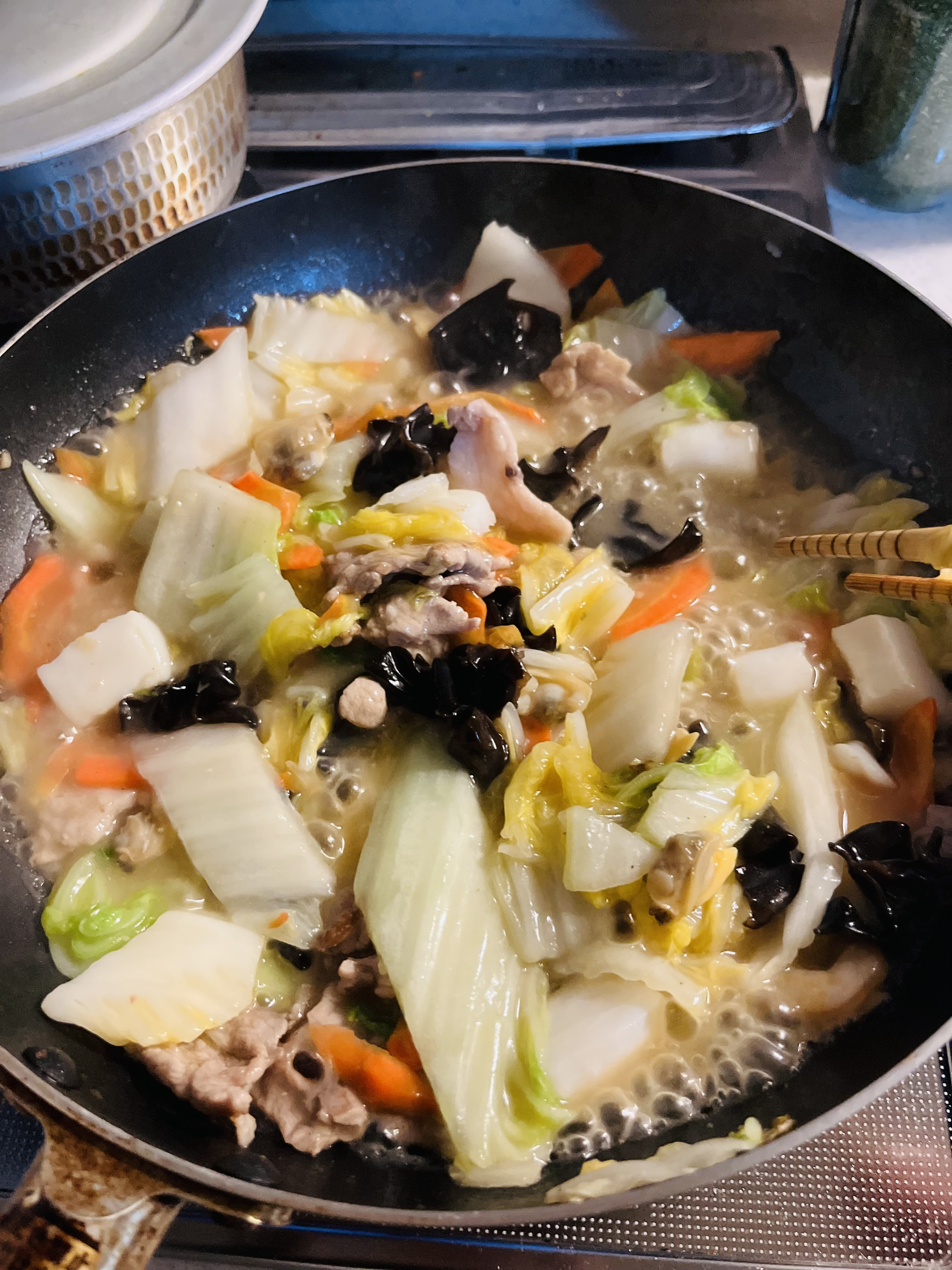 トップ > クッキング > 料理 > 八宝菜 ぱんだ 2025/10/29 19:25 八宝菜 シーフードミックスも入れて海鮮にしました。 うずら卵が欲しいな〜🥚 丼にしちゃった😅 あとは、さくらさんちの夕飯メニューの厚揚げおろし添え これ、とっても美味しかったです。 いいね 共有する 共有する X LINE リンクをコピー コメントする 2 件の返信 (新着順) ミュートしたユーザーの投稿です。 投稿を表示 さくら♡ 2025/10/30 21:52 野菜たっぷりで栄養満点💯❣️ 餡掛けはこれからの季節、嬉しいよね😊 いいね 返信する ミュートしたユーザーの投稿です。 投稿を表示 ねずみさん 2025/10/30 07:04 とっても美味しそうです。 いいね 返信する ミュートしたユーザーの投稿です。 投稿を表示 ぱんだ 2025/10/30 07:07 ねずみさん ねずみさんおはようございます😊 とっても美味しかったです。 ちょっと薄味だったかなー🤔 特に厚揚げ‼️毎日食べたくなります。ありがとうございます❣️ いいね 返信する