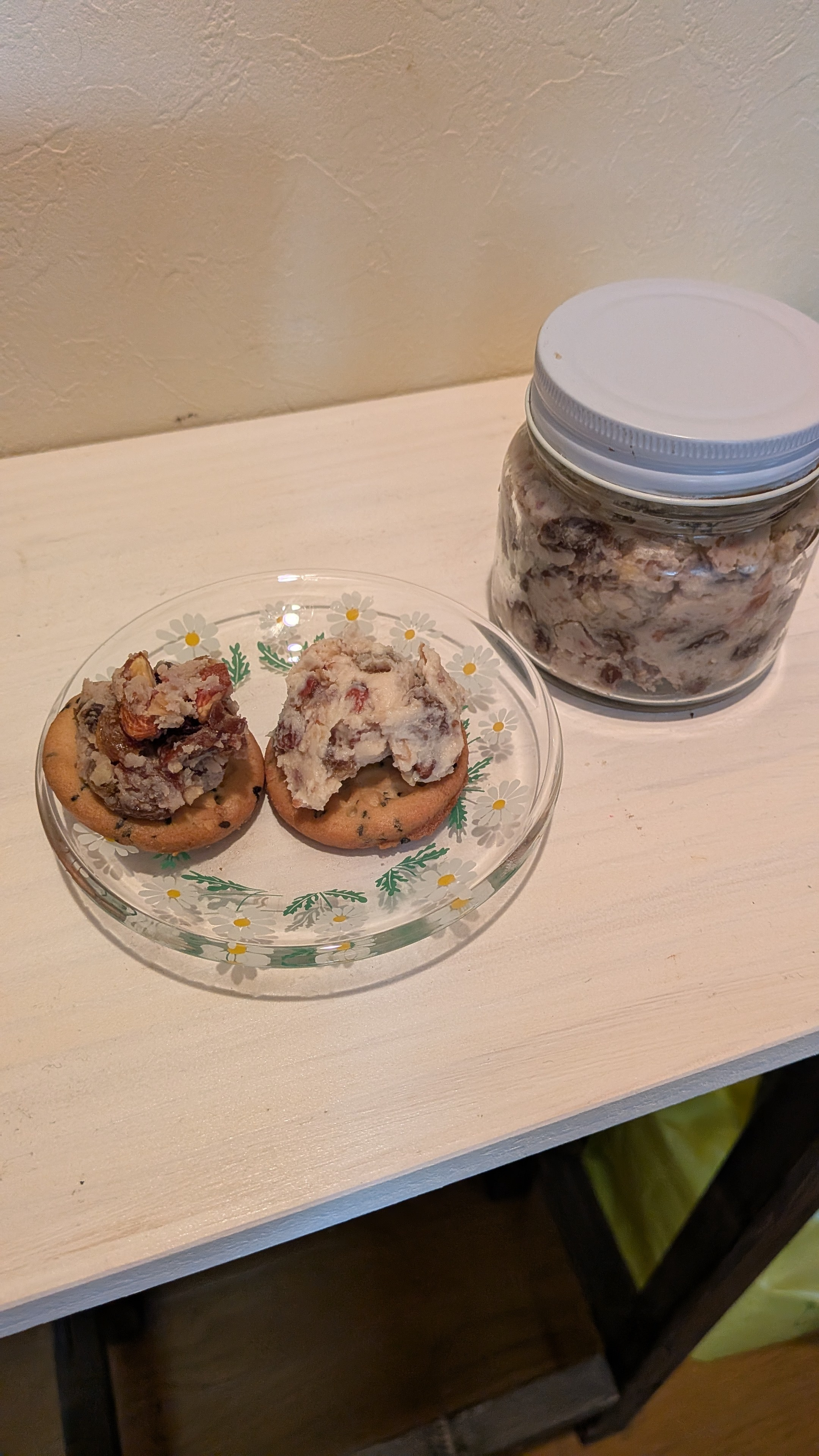 酒粕レーズンにクリームチーズを1対1の比率で混ぜて、その時に蜂蜜を少し入れると美味しです。