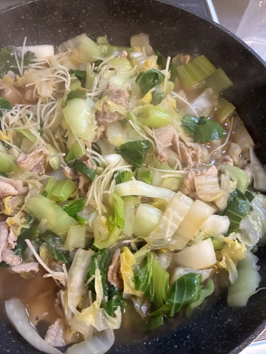 ③合わせておいた☆と春雨を入れて3分くらい煮込んだら水溶き片栗粉を加えてトロミをつけ、ブラックペッパーと香りつけのごま油を入れたら出来上がり。