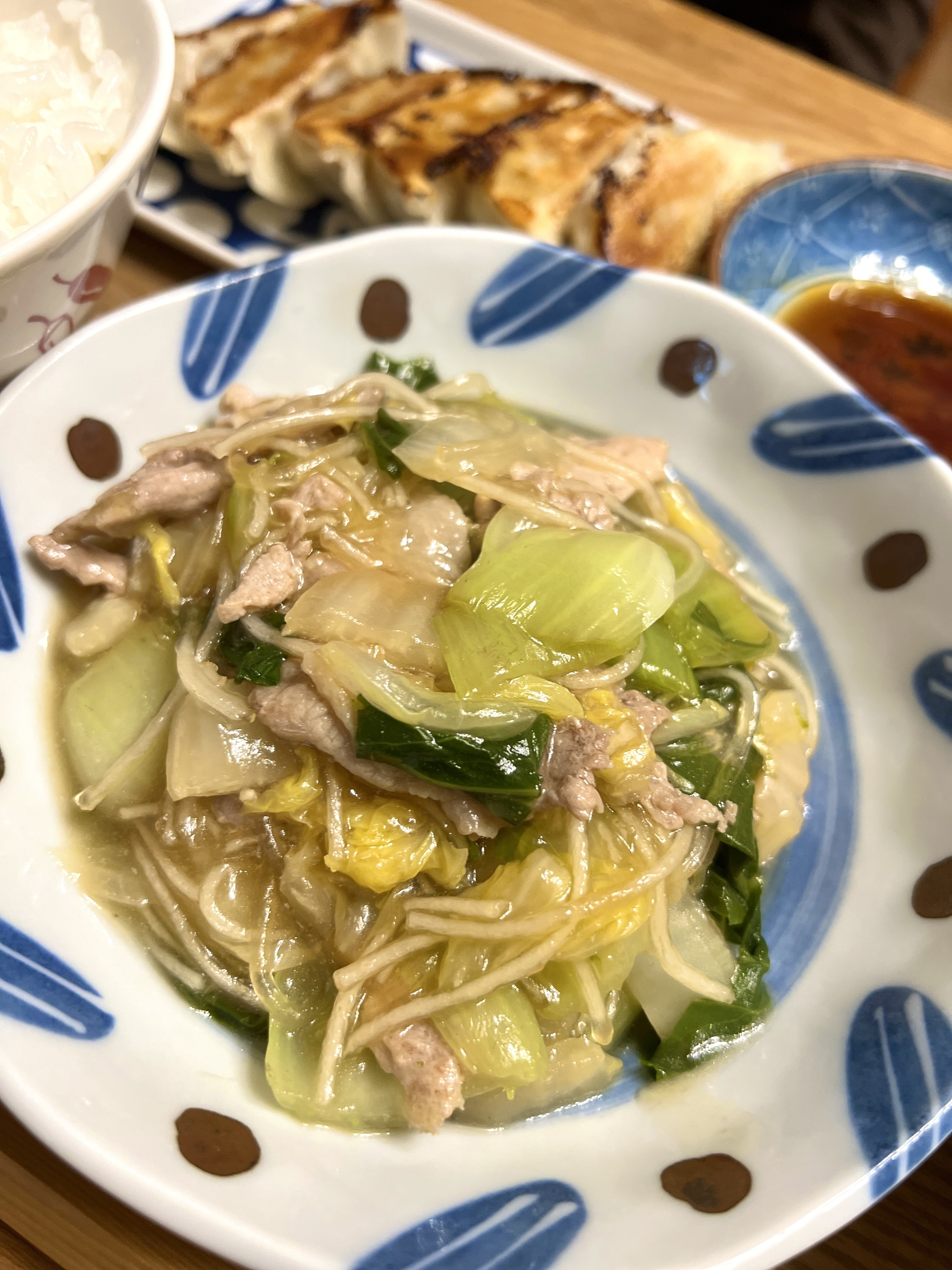 私の大好きなガラスープ味、青梗菜も良い色。丁度12時、1人前下さい。餡はたっぷりめに😀
