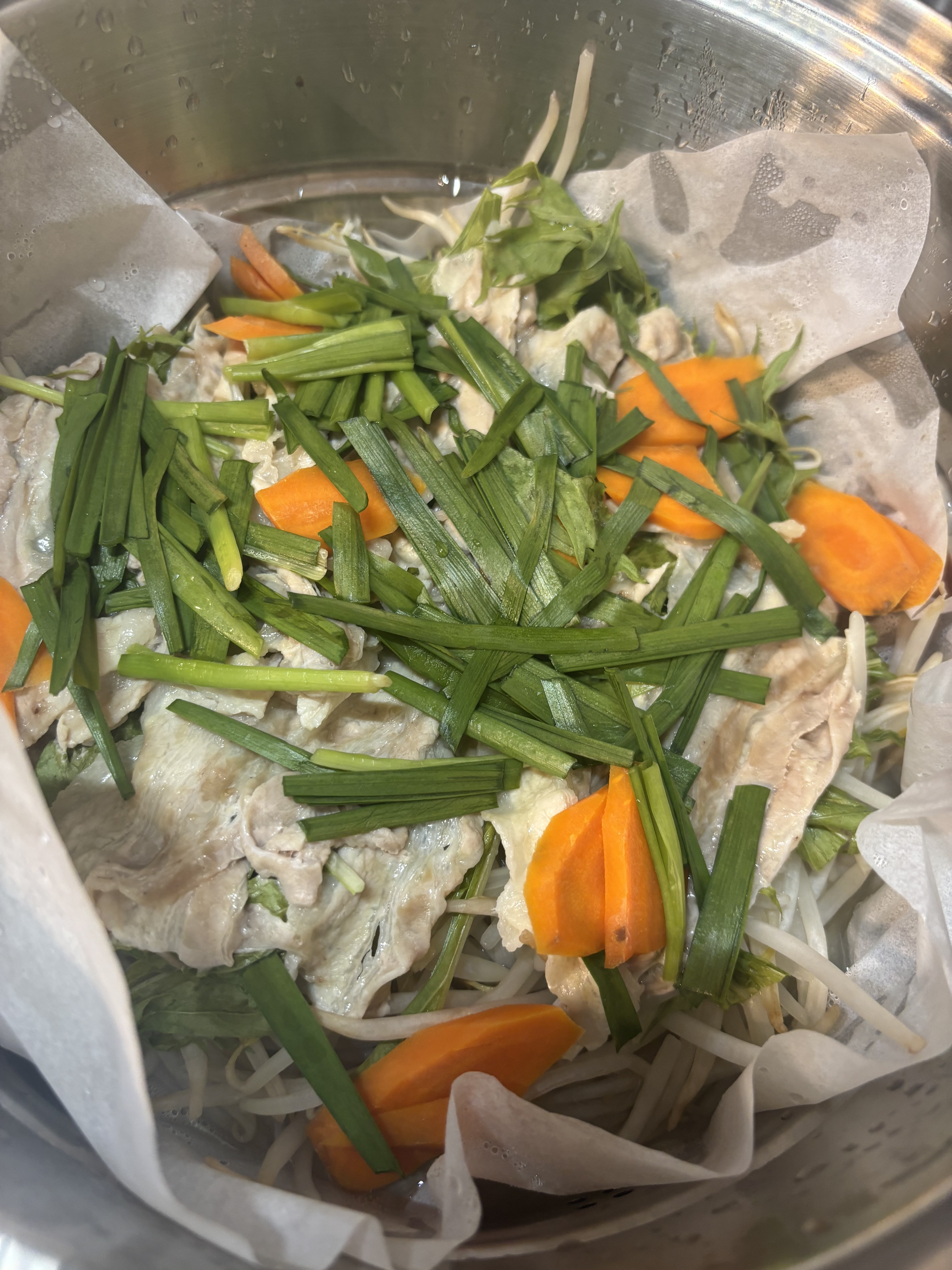 トップ > クッキング > 料理 > 蒸しました マリーモミ 2025/10/16 21:51 蒸しました 朝方3時過ぎに目が覚めて眠れなくなってしまい😳ちょっと疲れてたので簡単に💪 使い方よく分からないのですが義母が使っていた有名な蒸し鍋で野菜としゃぶしゃぶ用の豚を蒸してみました😄ニラが👍です😁 タレは大根おろし、ポン酢醤油、胡麻油。 いいね 共有する 共有する X LINE リンクをコピー コメントする 0 件の返信 (新着順)