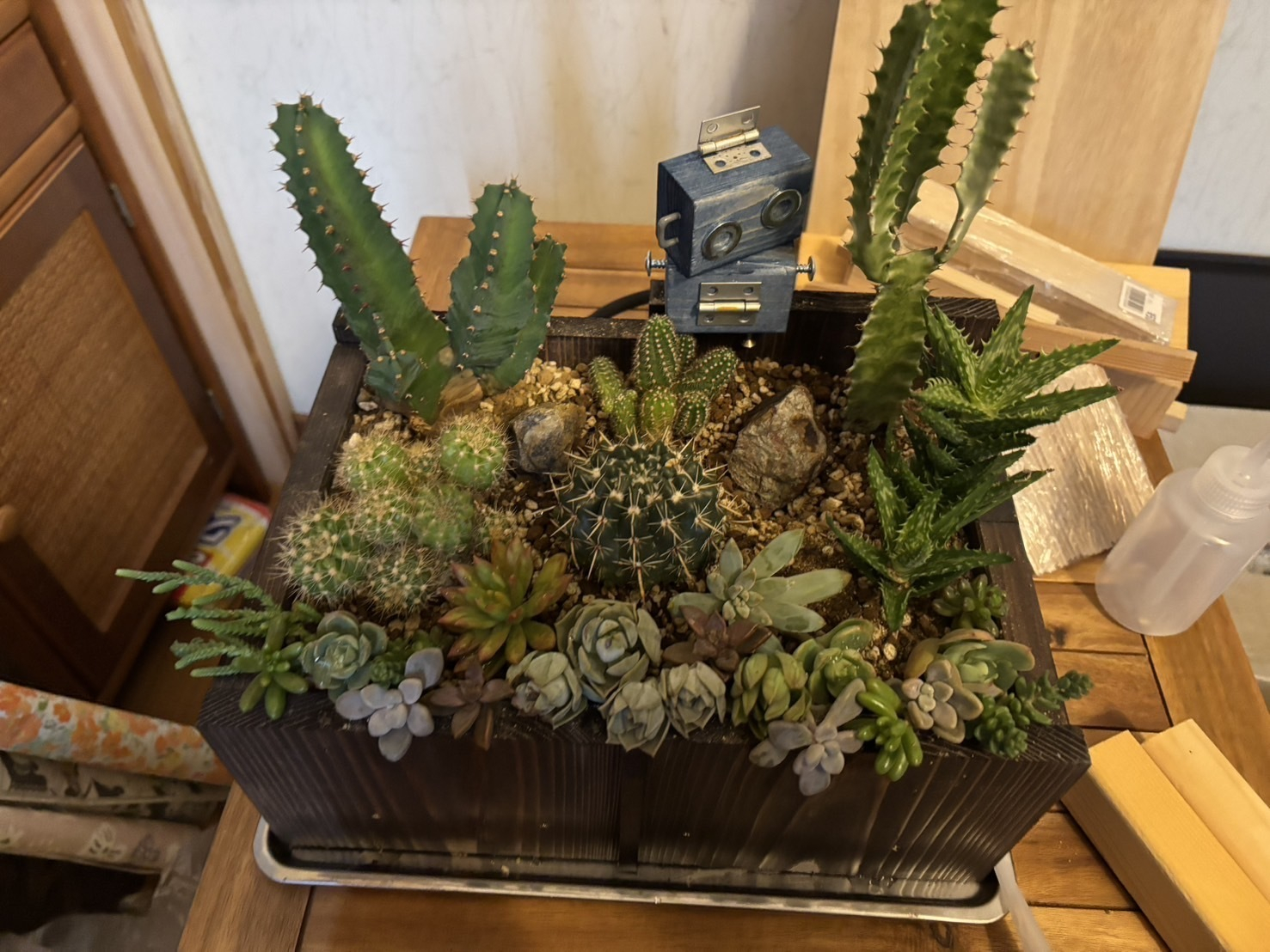 先日投稿した多肉植物とサボテンと移動WSで作った端材ロボ🤖の融合世界を表現した最初の形です。実は大変なミスをしていました。