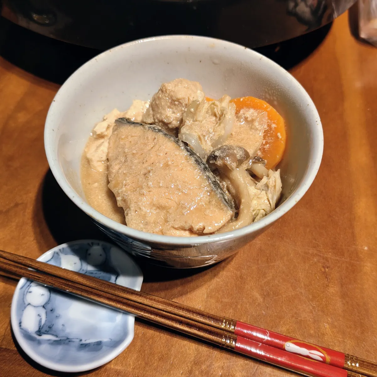 トップ > クッキング > 料理 > いただいた酒粕で…vol.5【酒粕入り石狩鍋🍲】 たびうさ 2026/01/12 02:07 いただいた酒粕で…vol.5【酒粕入り石狩鍋🍲】 またしても、茶色い画面🙄 今回は、やっと鮭を仕入れたので、粕汁風の石狩鍋になりました🍲 だいぶ、味が安定してきました😆 …そして、ちょっと飽きてきました😝💦 美味しいんですけどね😅 次はどうしよっかな🤔 たびうさクッキング たびうさ酒粕チャレンジ いいね 共有する 共有する X LINE リンクをコピー コメントする 2 件の返信 (新着順) ミュートしたユーザーの投稿です。 投稿を表示 りお 2026/01/12 11:15 酒粕は美味しいから悩みます いいね 返信する ミュートしたユーザーの投稿です。 投稿を表示 たびうさ 2026/01/13 02:29 りお 美味しいんですけどね、あんまり続くと飽きますね😅 いいね 返信する ミュートしたユーザーの投稿です。 投稿を表示 toshi 2026/01/12 08:30 これは体温まりますね 美味しそうですね 食べたくなりました😊 いいね 返信する ミュートしたユーザーの投稿です。 投稿を表示 たびうさ 2026/01/12 10:04 toshi わ😍ホントですか? この茶色いのをご覧になって、そう思われたなら、想像力豊かでいらっしゃるんですね😆 お味は、確かに美味しかったんです🤭💕 いいね 返信する ミュートしたユーザーの投稿です。 投稿を表示 toshi 2026/01/12 10:06 たびうさ 美味しいこと間違いなしですよ😊 いいね 返信する ミュートしたユーザーの投稿です。 投稿を表示 たびうさ 2026/01/12 14:21 toshi ありがとうございます😋 いいね 返信する