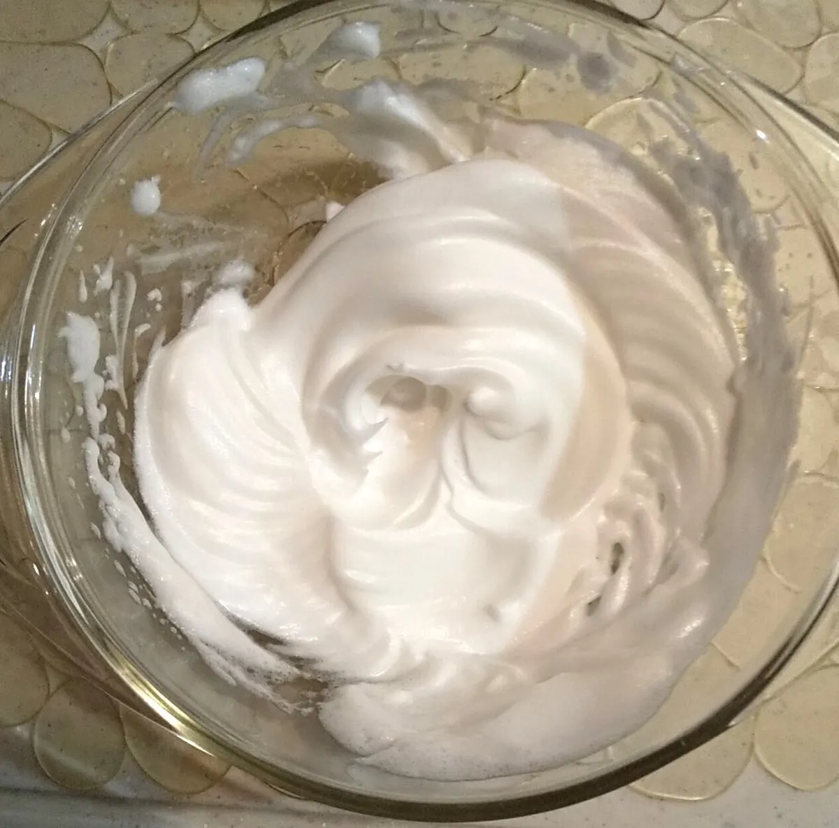 ①卵白にグラニュー糖を3回に分けて入れ、角が立つまで、泡立て、メレンゲを作る ![]() ⬇️ ![]() |
