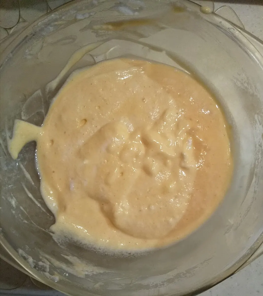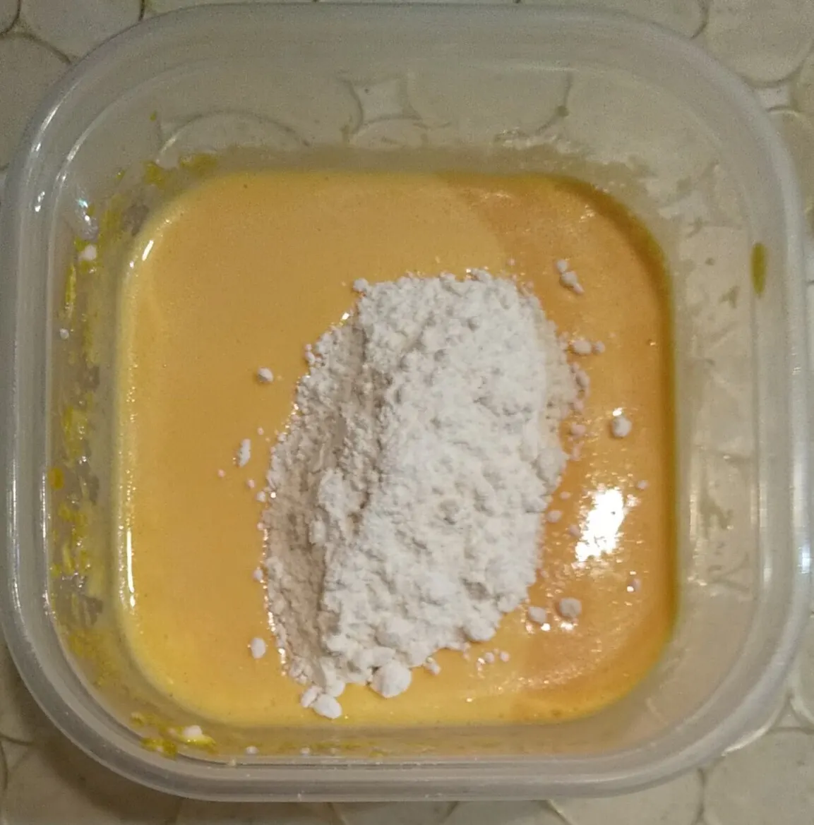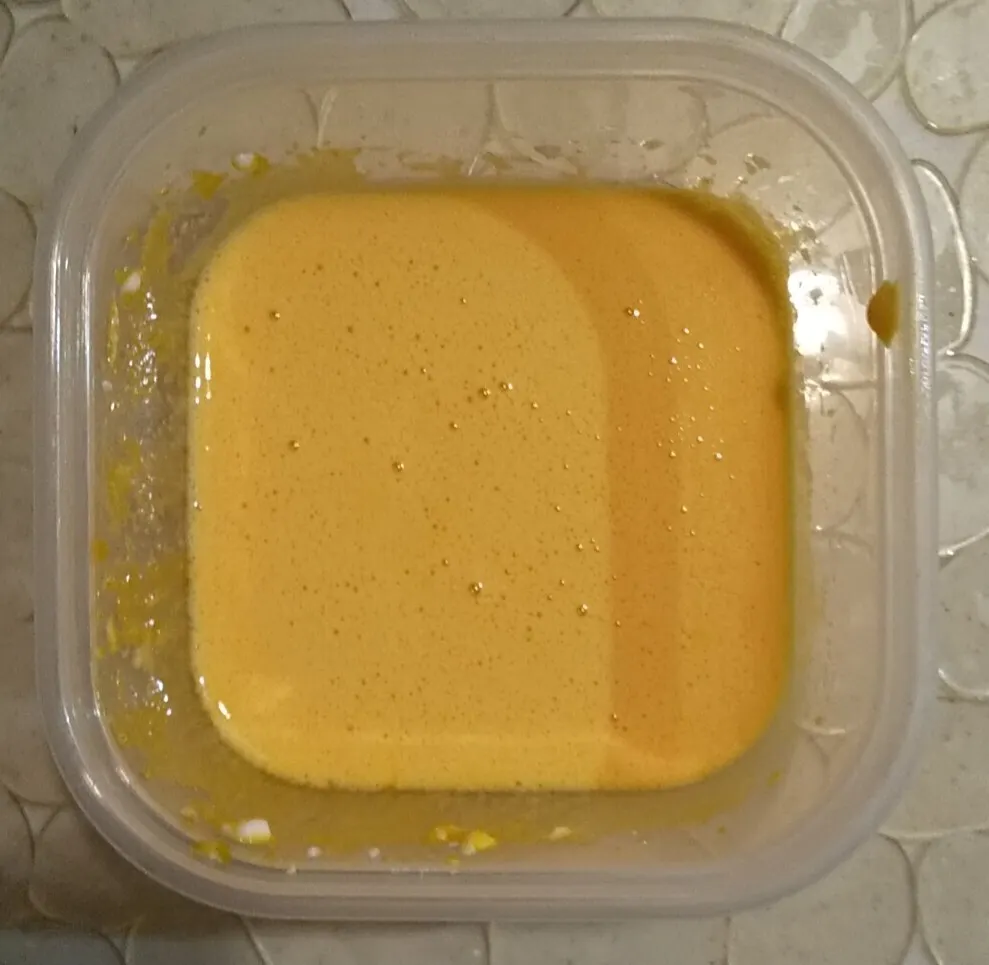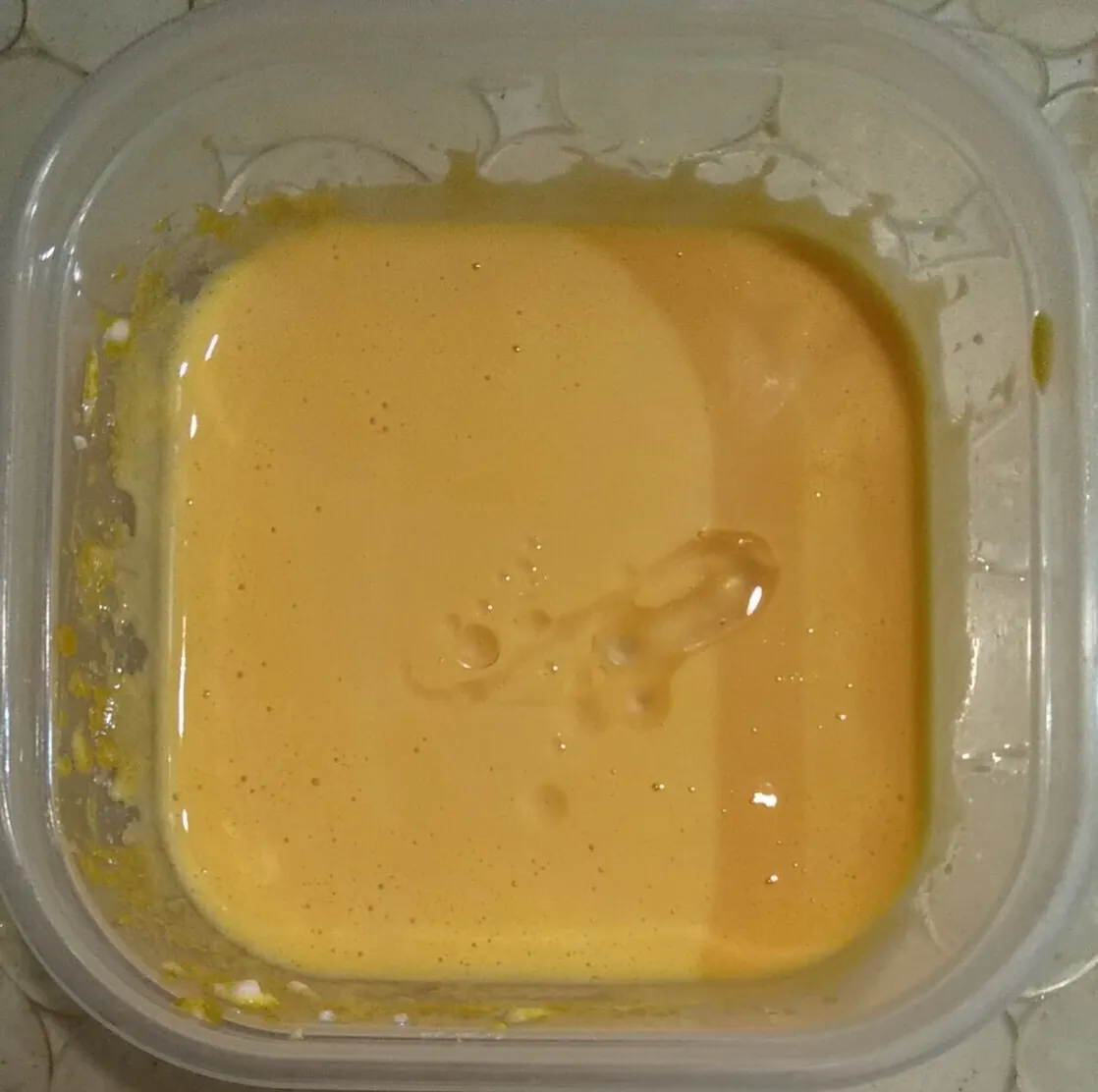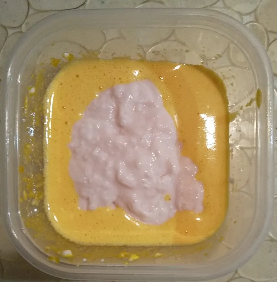③卵黄に、🍓ヨーグルト ![]() ⬇️ サラダ油を入れ、混ぜる ![]() |