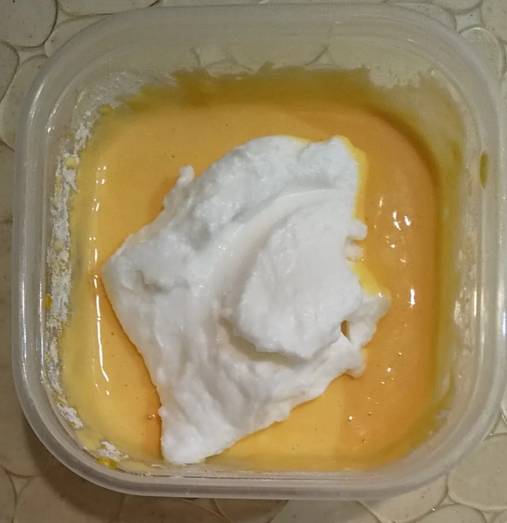 ⑤卵黄に2回に分けて、メレンゲを入れ、ゴムベラで混ぜる ![]() |
