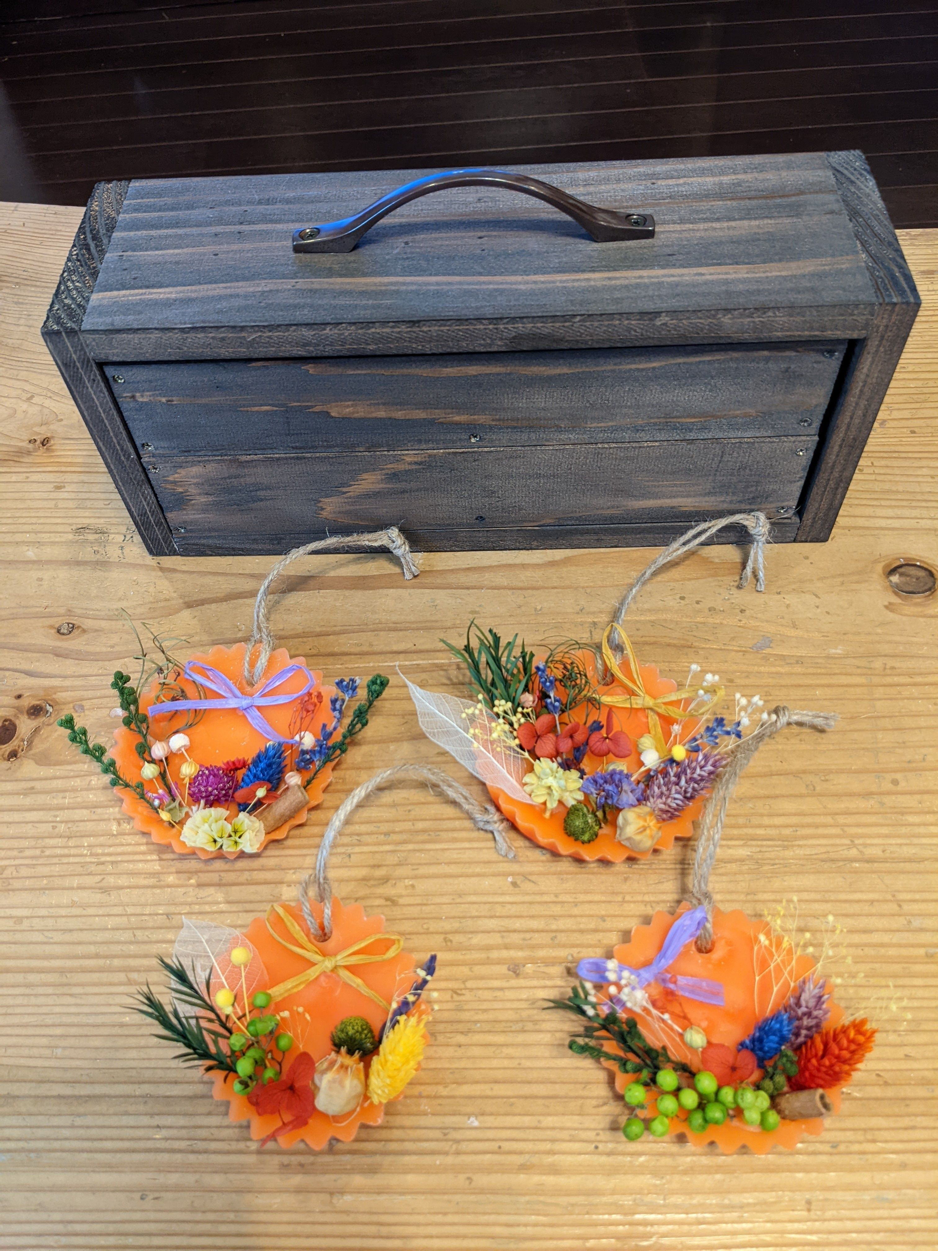 トップ > グリーン > アロマワックスサシェ とカトラリーケース cocoka 2022/10/09 11:22 アロマワックスサシェ とカトラリーケース 昨日はカトラリーケースとアロマワックスサシェを作ってきました✨ カトラリーケースは娘が一人で作り、わたしは見守りでした😊 文具を入れるのに使うそうです。 アロマワックスサシェは以前作った時は白でしたが、今回はハロウィンバージョンでオレンジに華やかな感じになりました。 一度やってるのに全く工程を覚えておらず焦ってしまい💦固まる前にドライフラワーを刺す作業が間に合わずに思った様にならずでしたが、なんとか出来ました😊 いいね 共有する 共有する X LINE リンクをコピー コメントする 1 件の返信 (新着順) ミュートしたユーザーの投稿です。 投稿を表示 coco⭐️ 2022/10/09 11:41 カトラリーケース娘さん上手に出来ましたね‼️素敵💕 アロマワックスサシェ、ハロウィンバージョンのオレンジ🧡も良いですね😊 いいね 返信する