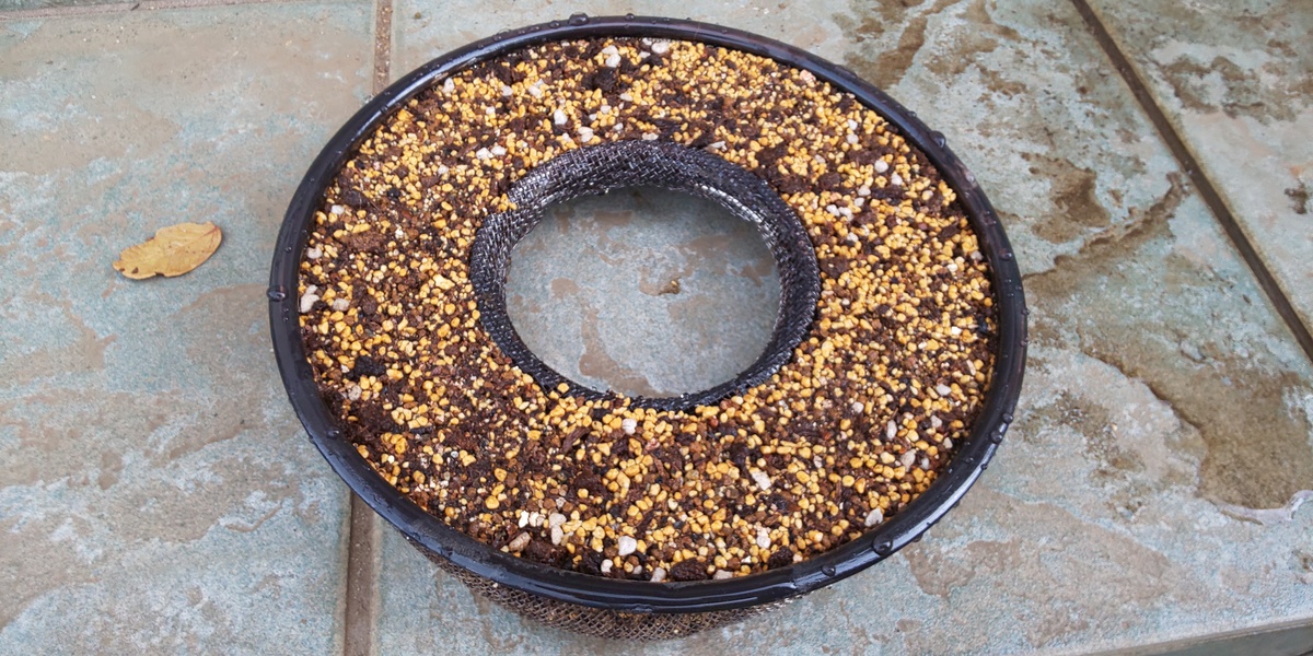 先日WSで作ったワイヤーフェンス付きプランターに大きさピッタリなので成長がしたらまん中に飾りたいです。😍