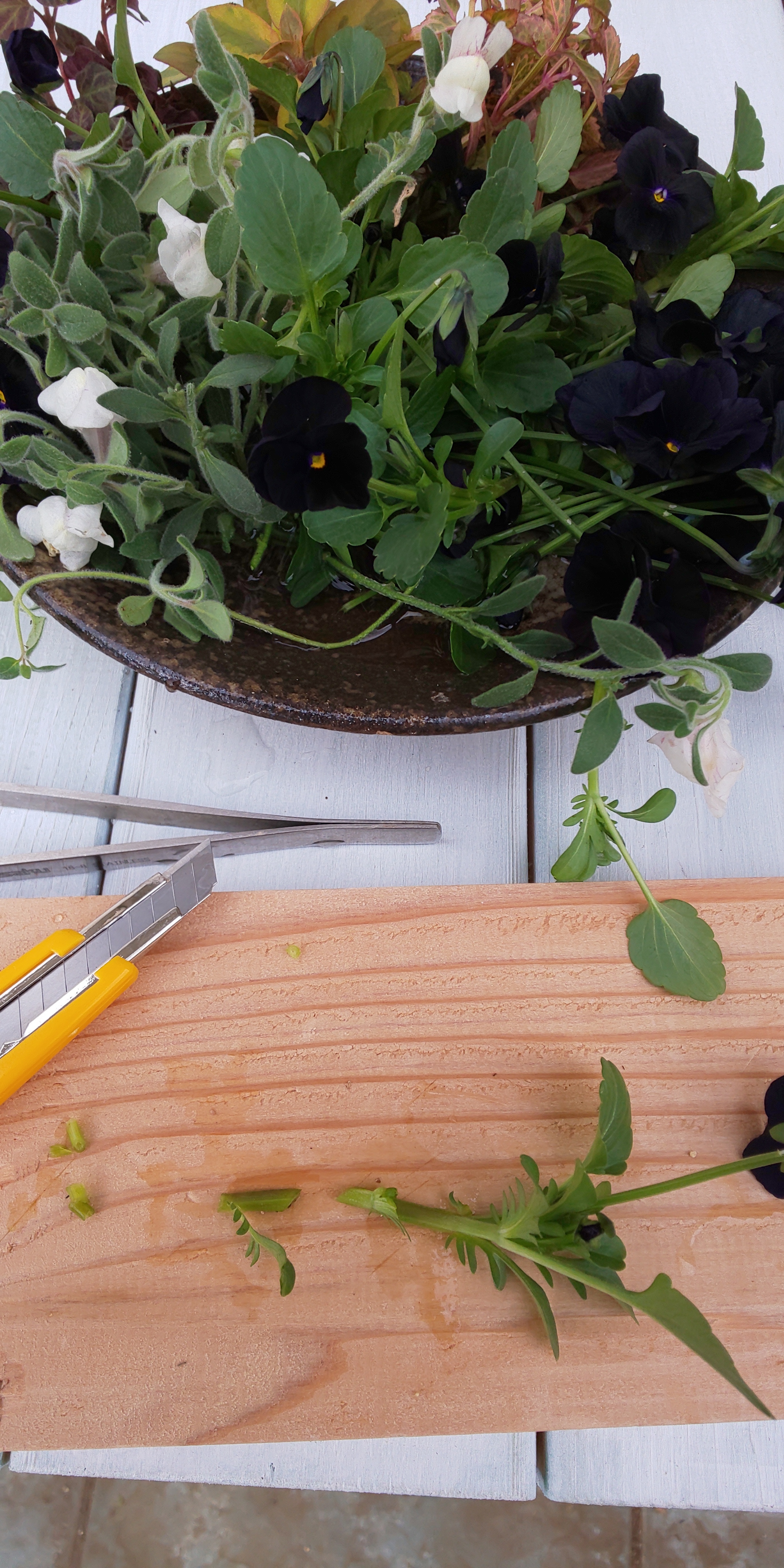 挿し穂を作って、水あげしてカッター(ハサミはダメ)で斜めにカットし、フラワーアレンジするようにさしていきます。