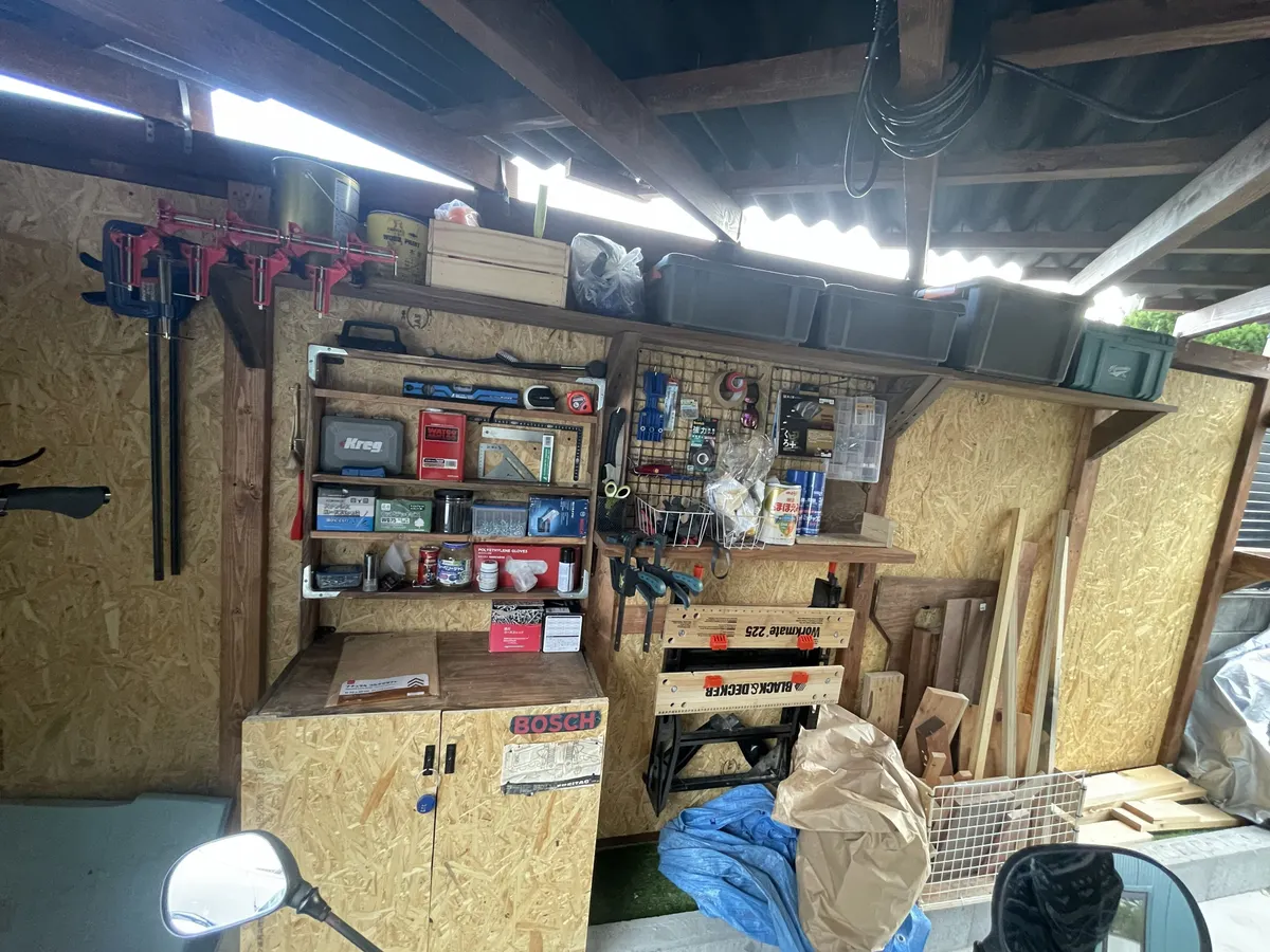 作業机が狭かったので、作業机を制作して、その下にサイクロン集塵置いてますね。