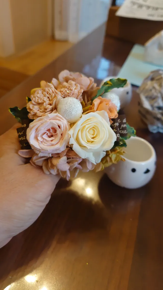 そんな時たまたま 知人より プリザの素材をたくさんいただく事ができ メインをメルカリで買い足して
