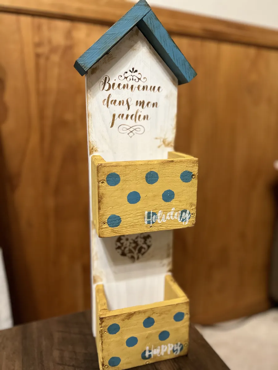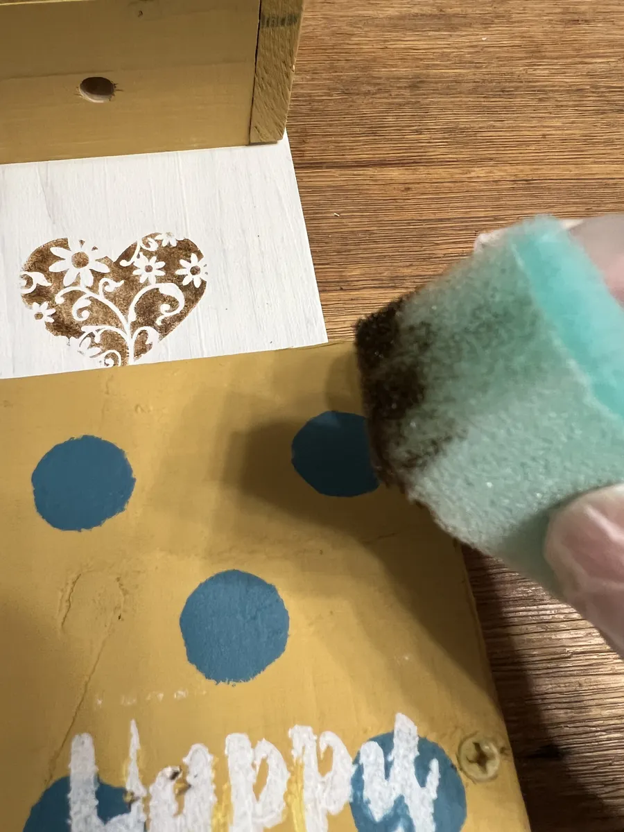 投稿を表示形もステンシルも可愛い〜と見ていましたが、最後の汚し加工でよりいい雰囲気出ましたね🏠屋根カットもお上手で、2階建てで素敵です。
