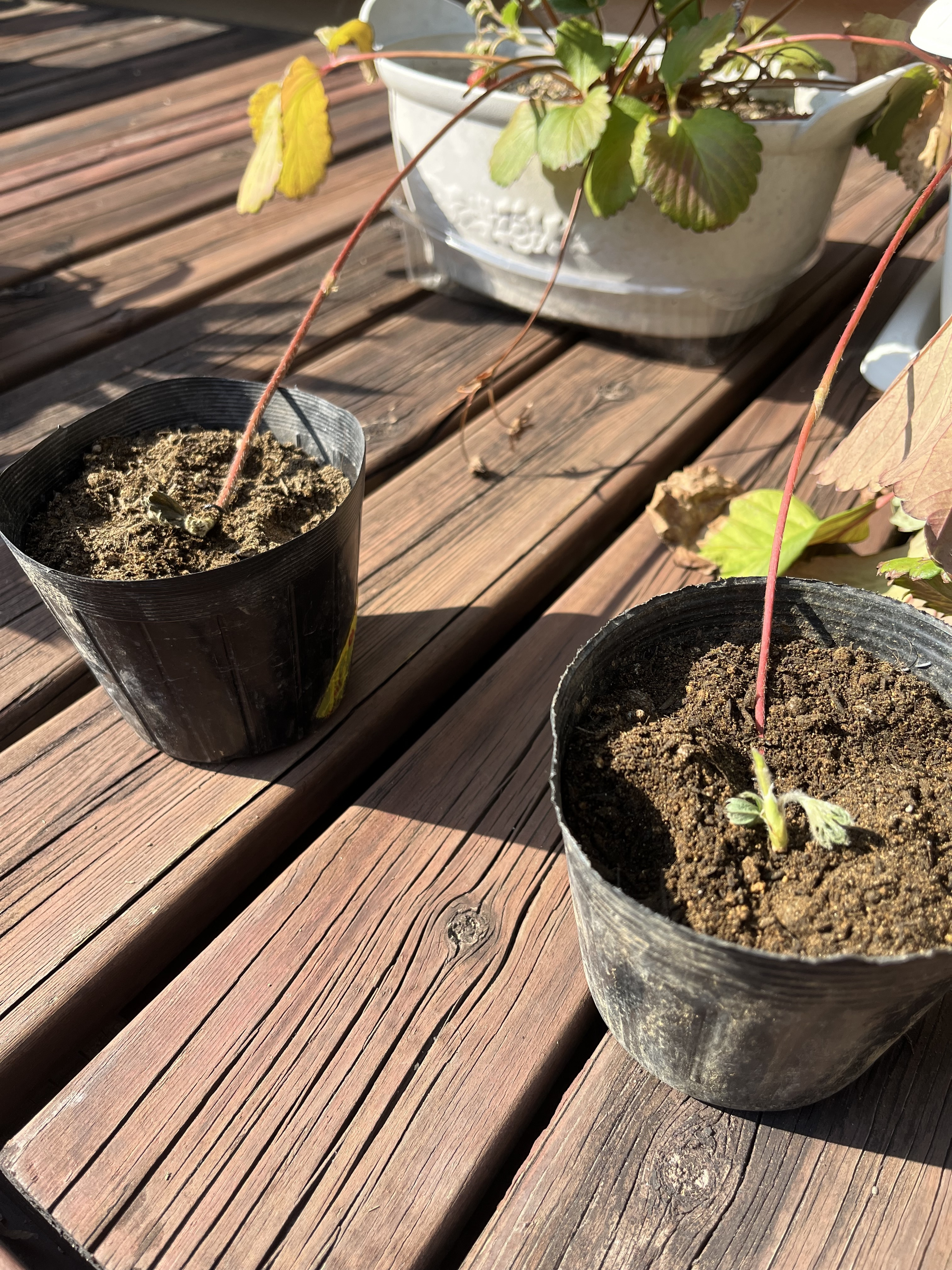 投稿を表示もう、ランナー取りしてるのですね。子株、まだ小さすぎて直ぐには根っこが出なさそうですね。ヘアピン固定、バッチリ👍です。