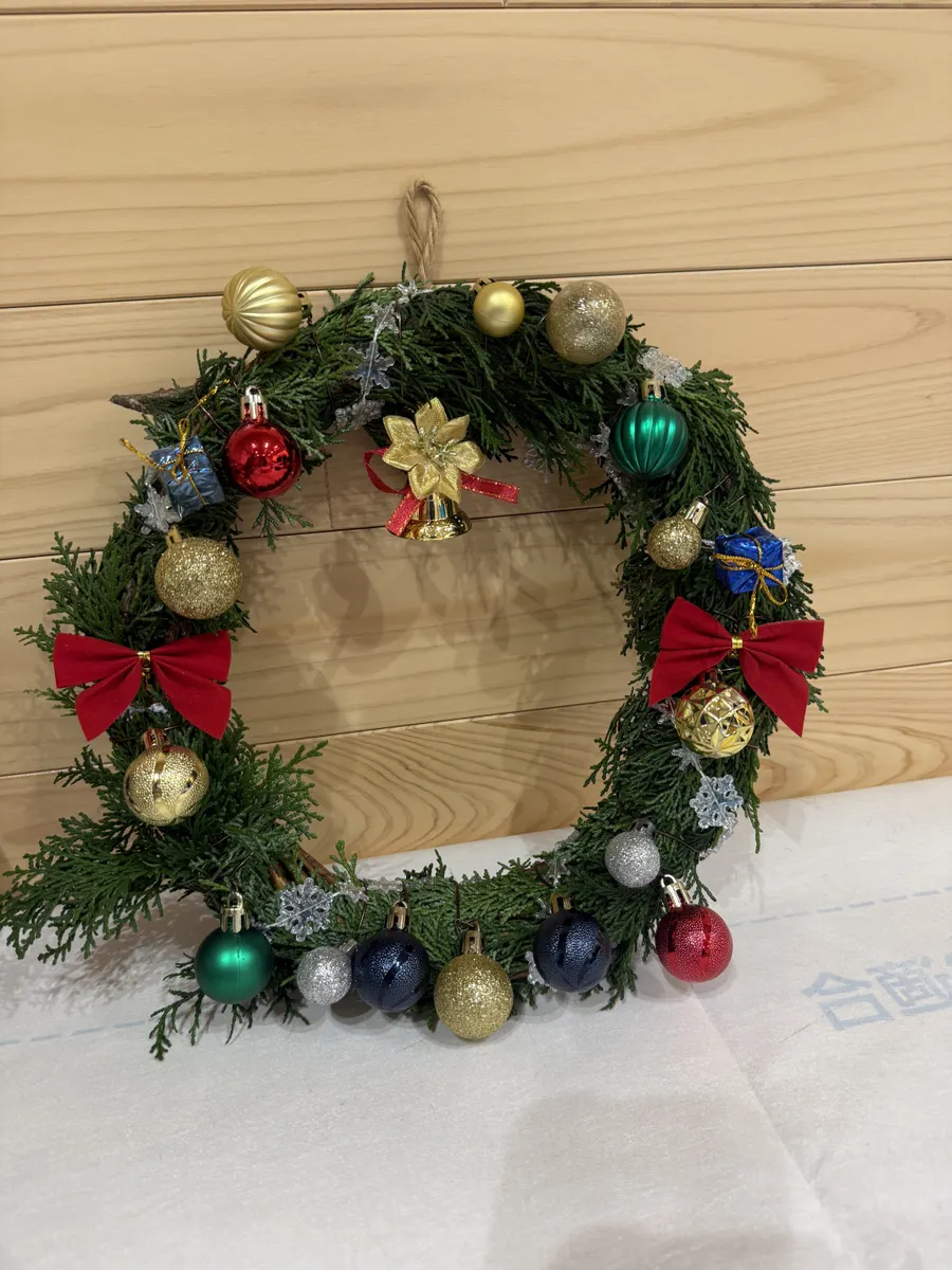 ヒノキの香りはしませんが、生葉で作るリースは葉の色が鮮やかでやっぱり好きです。