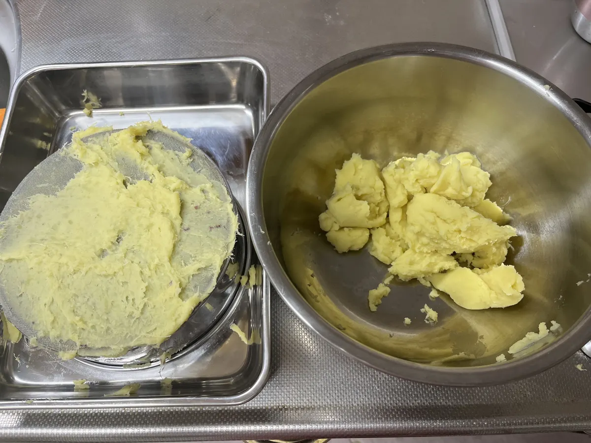 普段、スイートポテトを作る時に裏ごしはしませんが、今回は、頑張って裏ごしして滑らかなペーストを作りました。