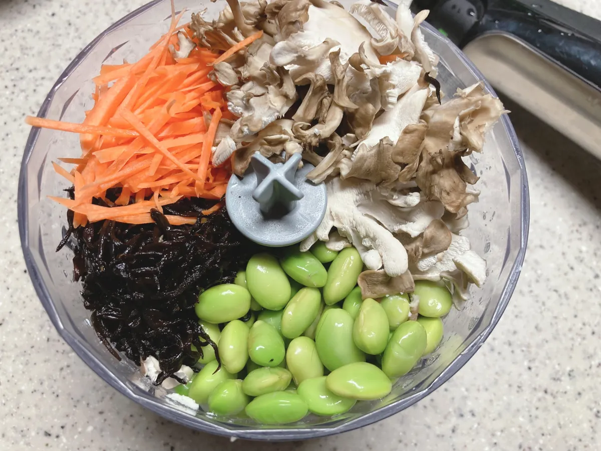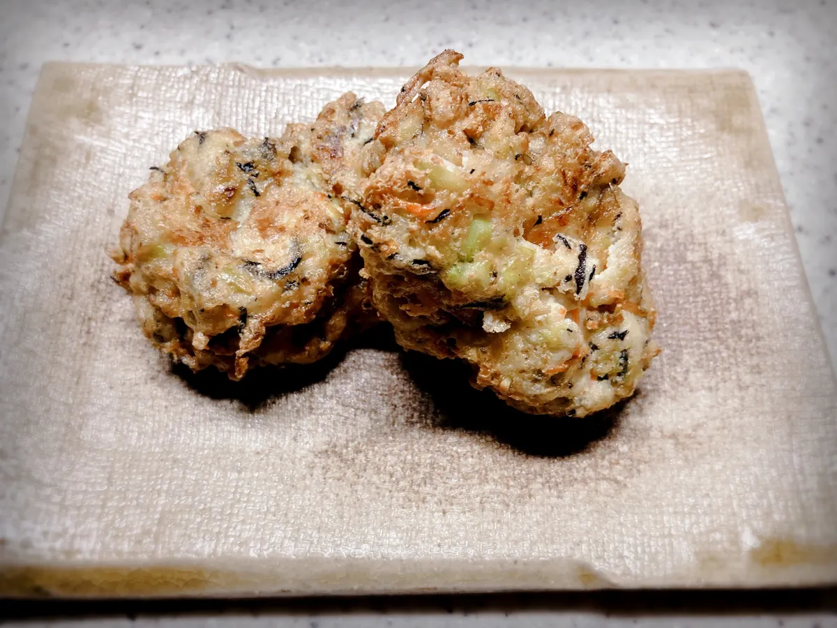 自家栽培の舞茸、枝豆、人参のがんもどき