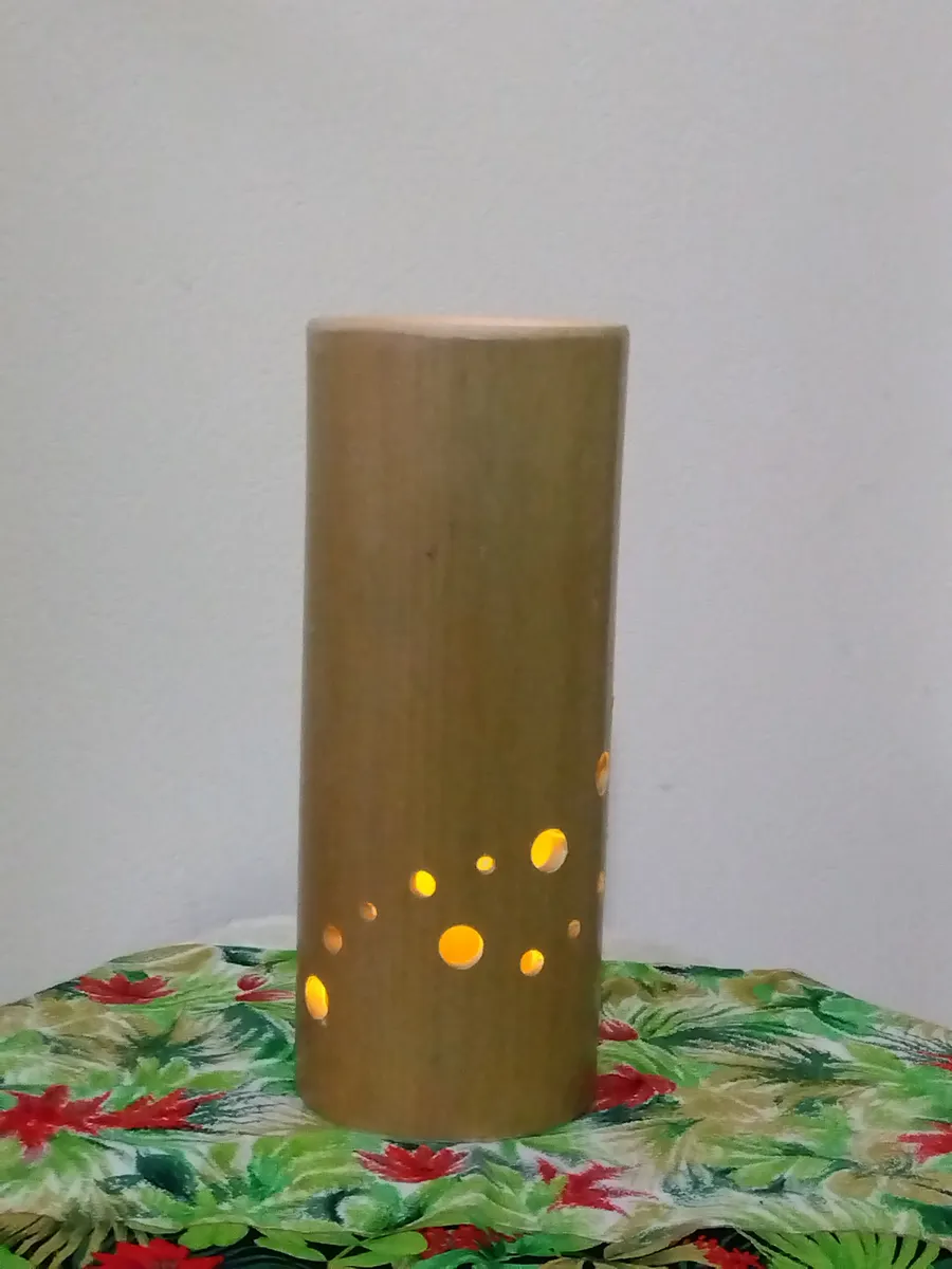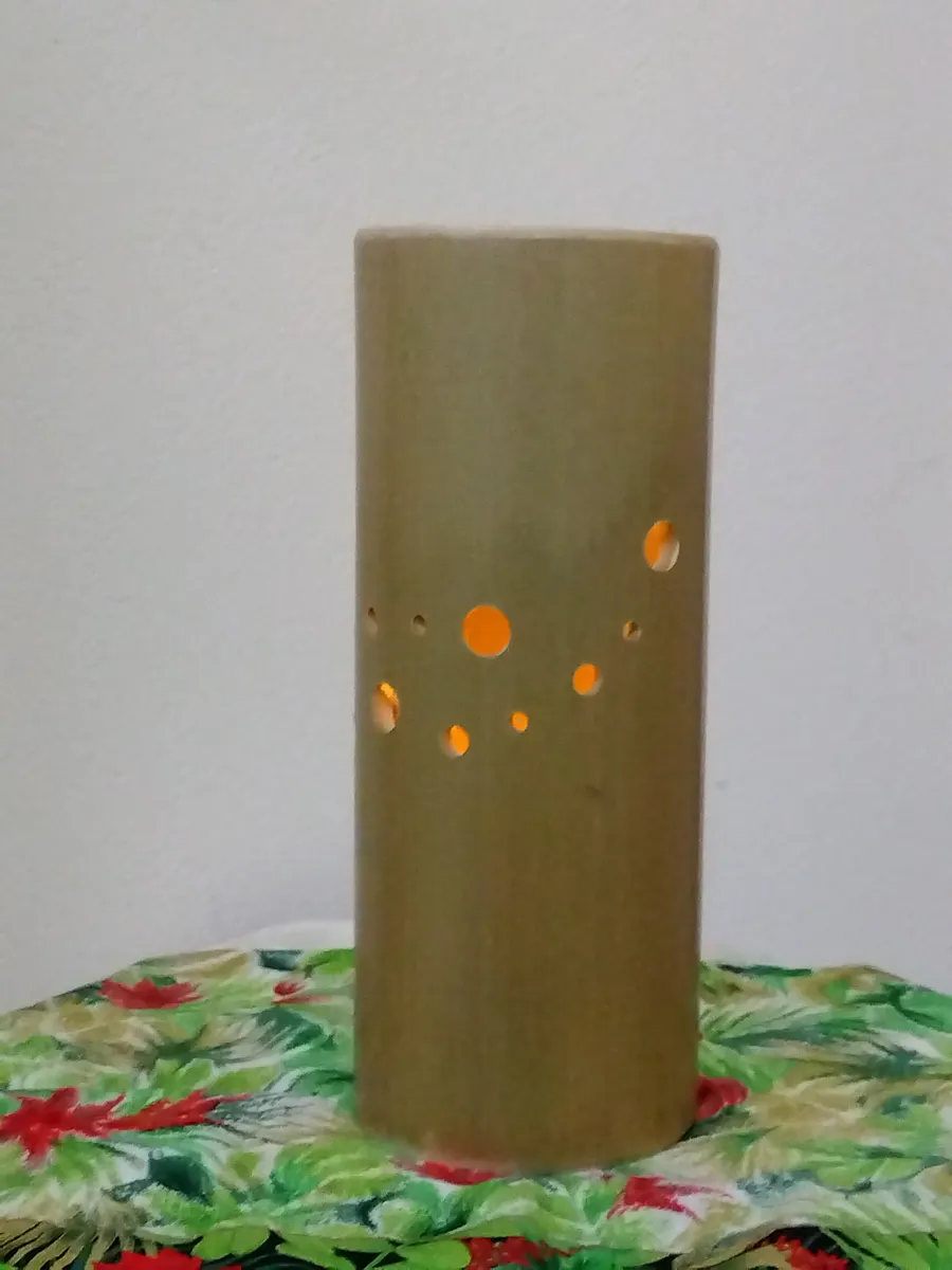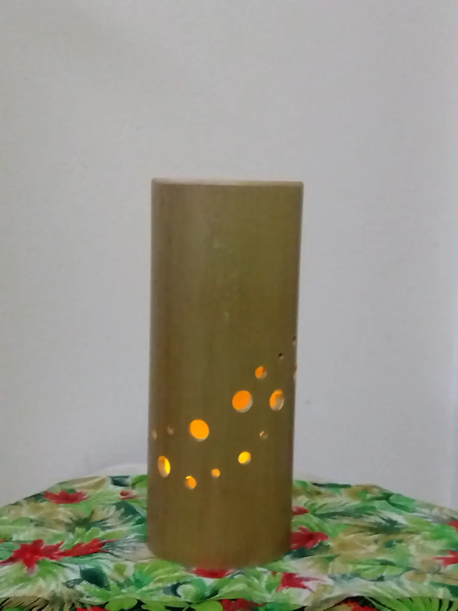 投稿を表示竹筒にたくさん穴開けするんですね。大小の丸穴だけで、綺麗な続き模様になってます。
