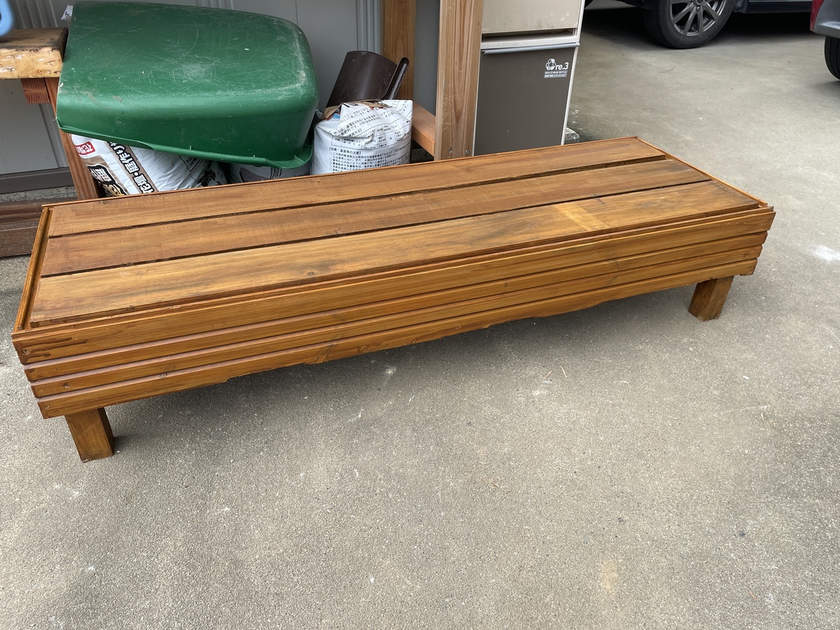 作成後こちらで設置してましたがシロアリの被害にあって脚の部分が朽ちてました。。。