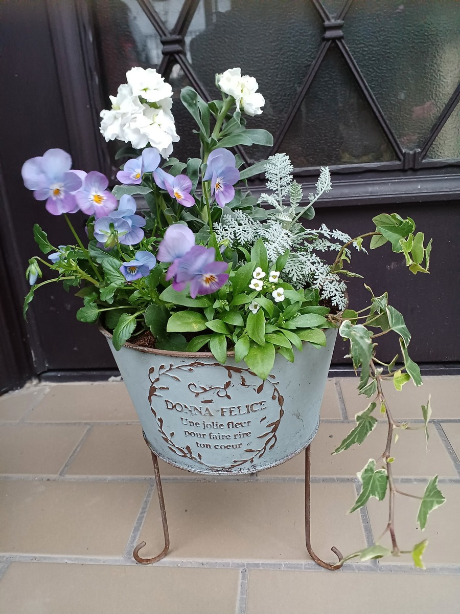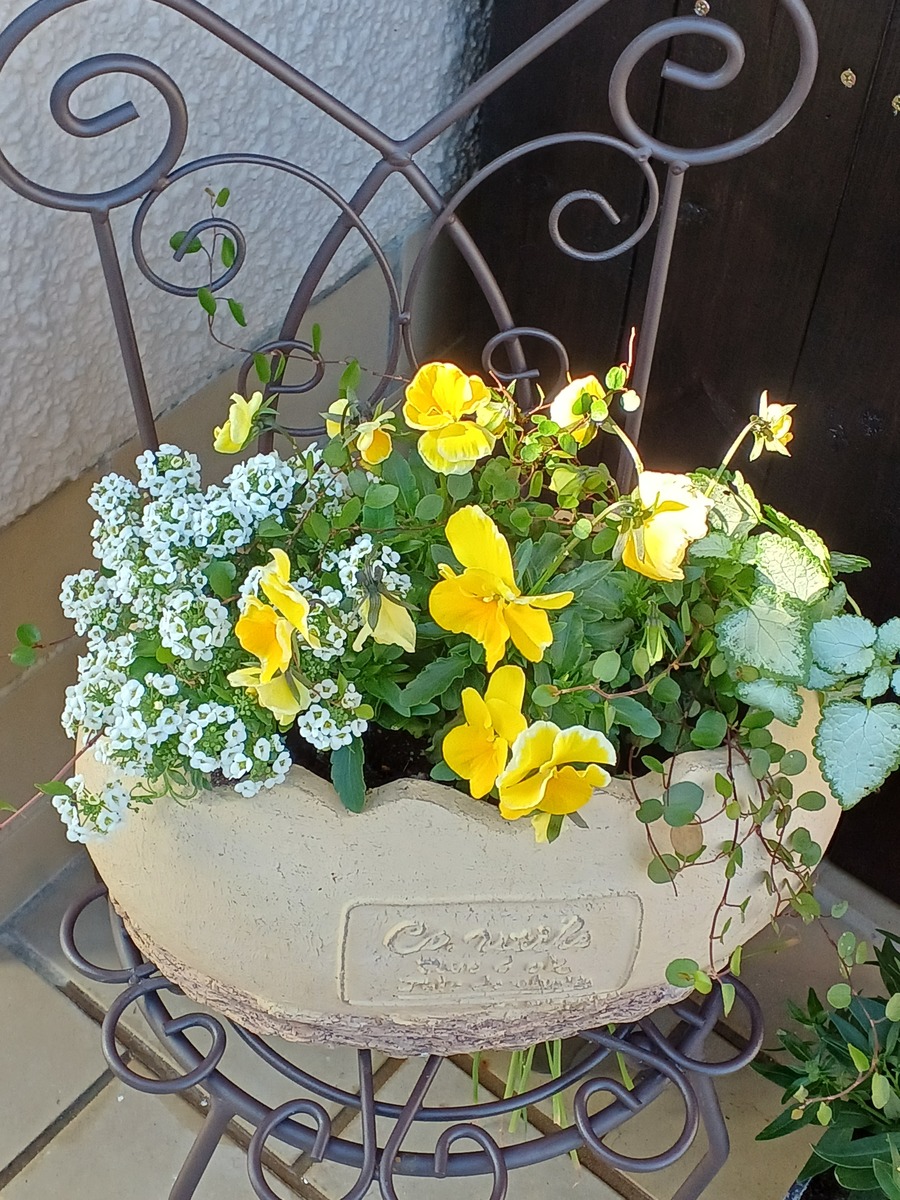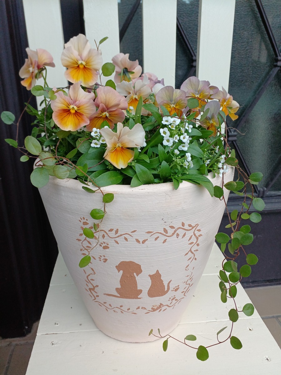 鉢も可愛いし、アンティークなパンジーとの色合いも素敵💓