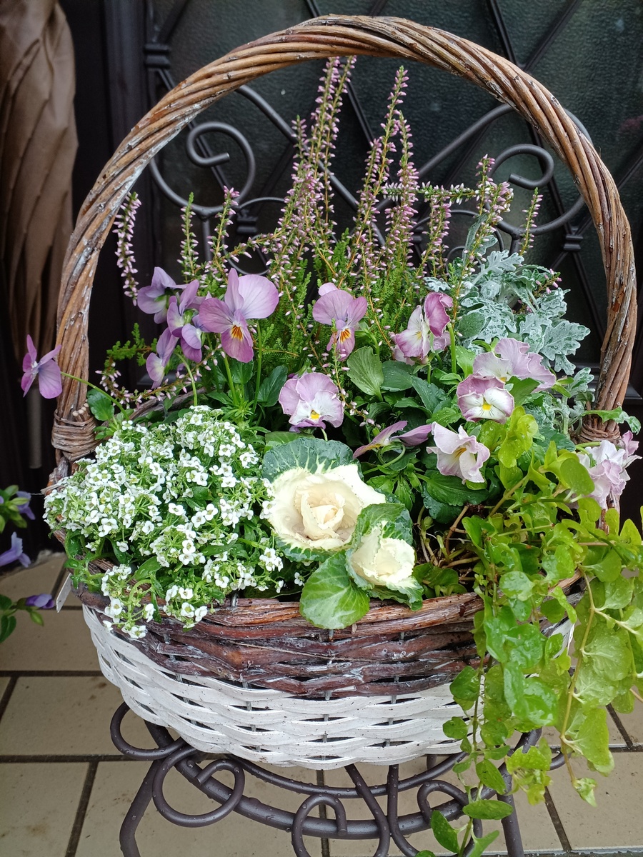 籠使いで葉牡丹が、薔薇みたいで可愛い💕