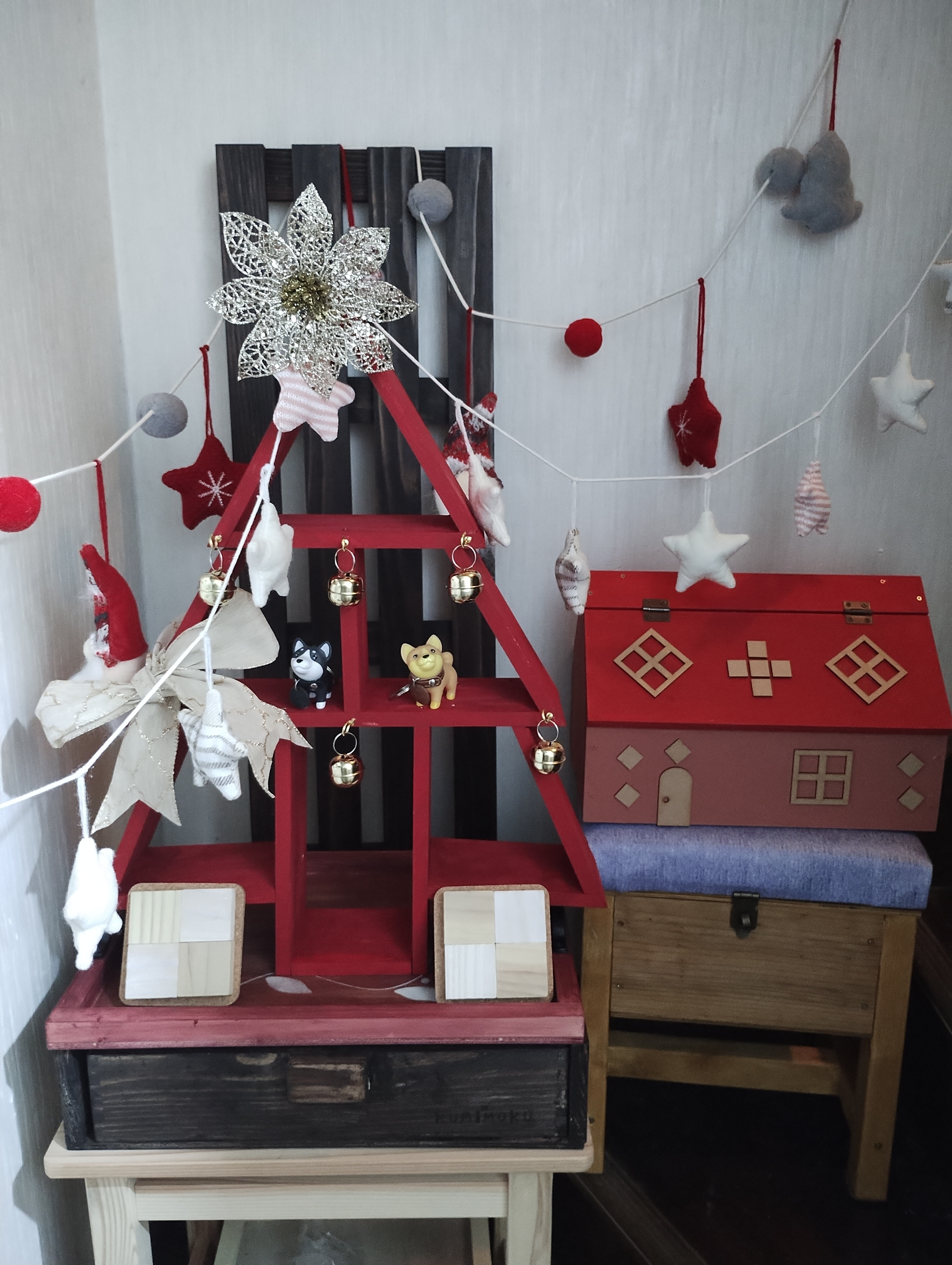 赤いツリーと白いオーナメント素敵、素敵😍💕