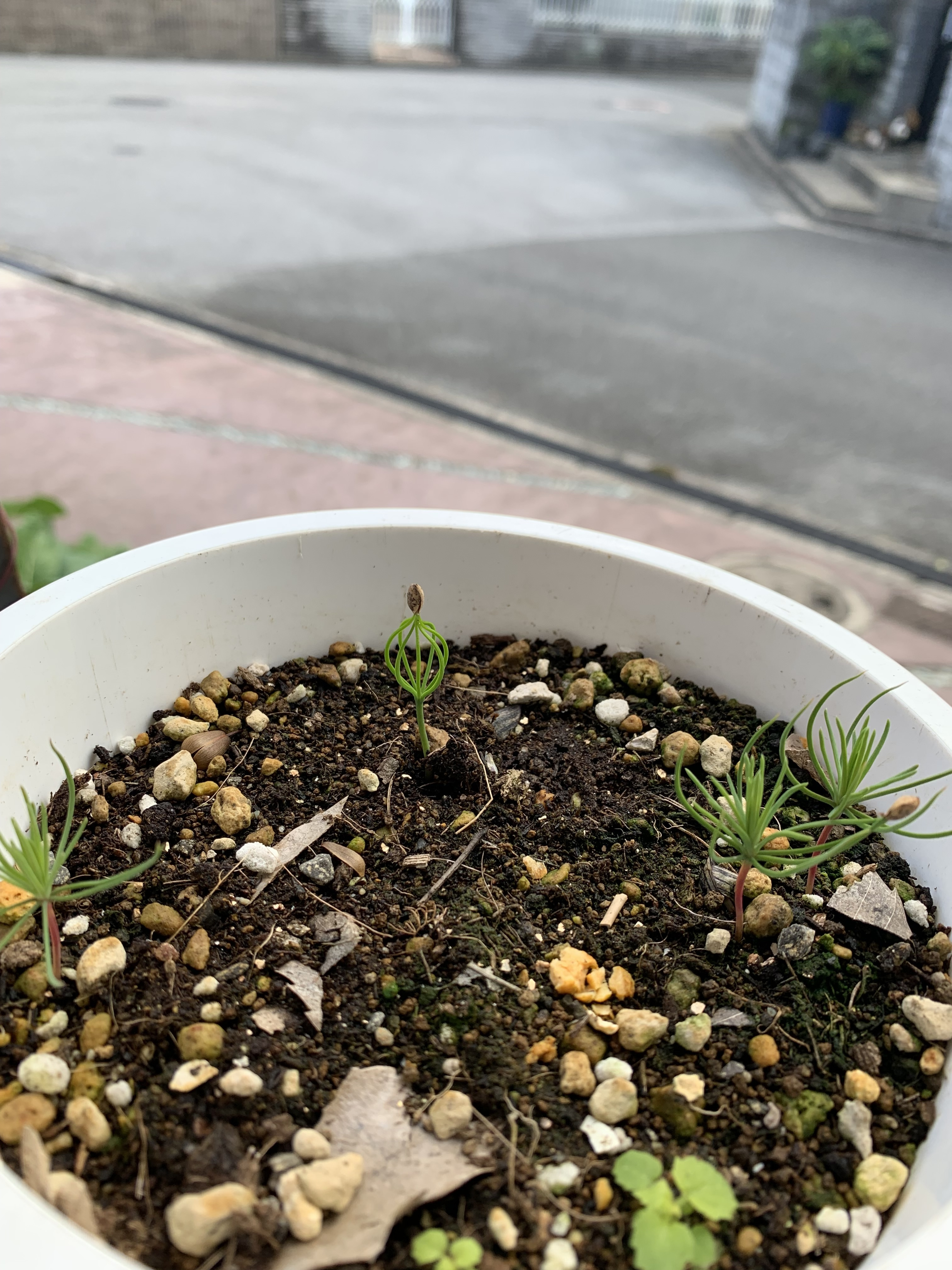 10月に初めて発芽した 松の赤ちゃん