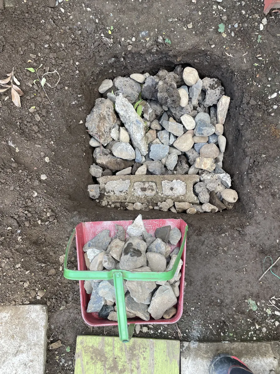 大きい邪魔な石は敷地のなかで場所を見つけて埋めちゃえば🤭