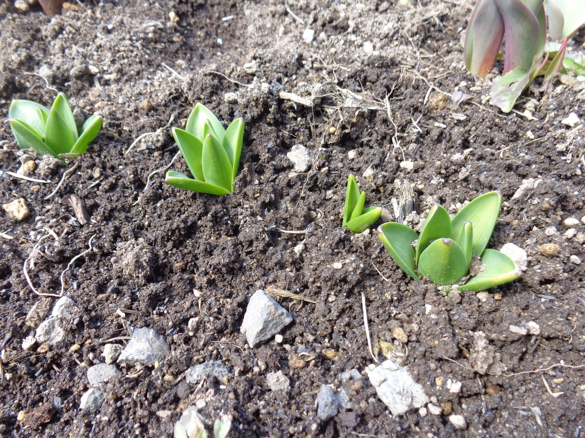 こちらは、ヒアシンス、健気に今年も芽を出しました。うれしいなぁ