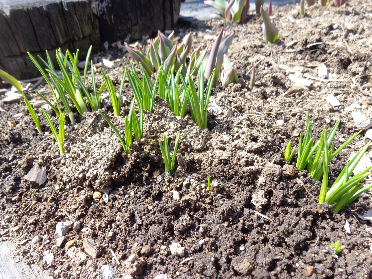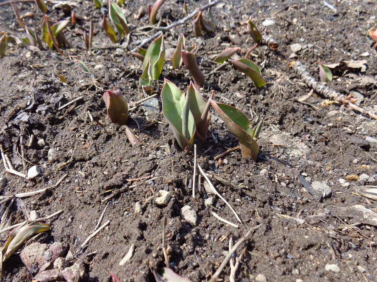 その後はどうなったかなぁ?というわけで、庭に出てみると、雪は大分なくなりました。もう少しで積雪0cmになりそうです。そんな中ちょっといろいろな芽が出だしていたので写真に撮って見ましたよー(^^)