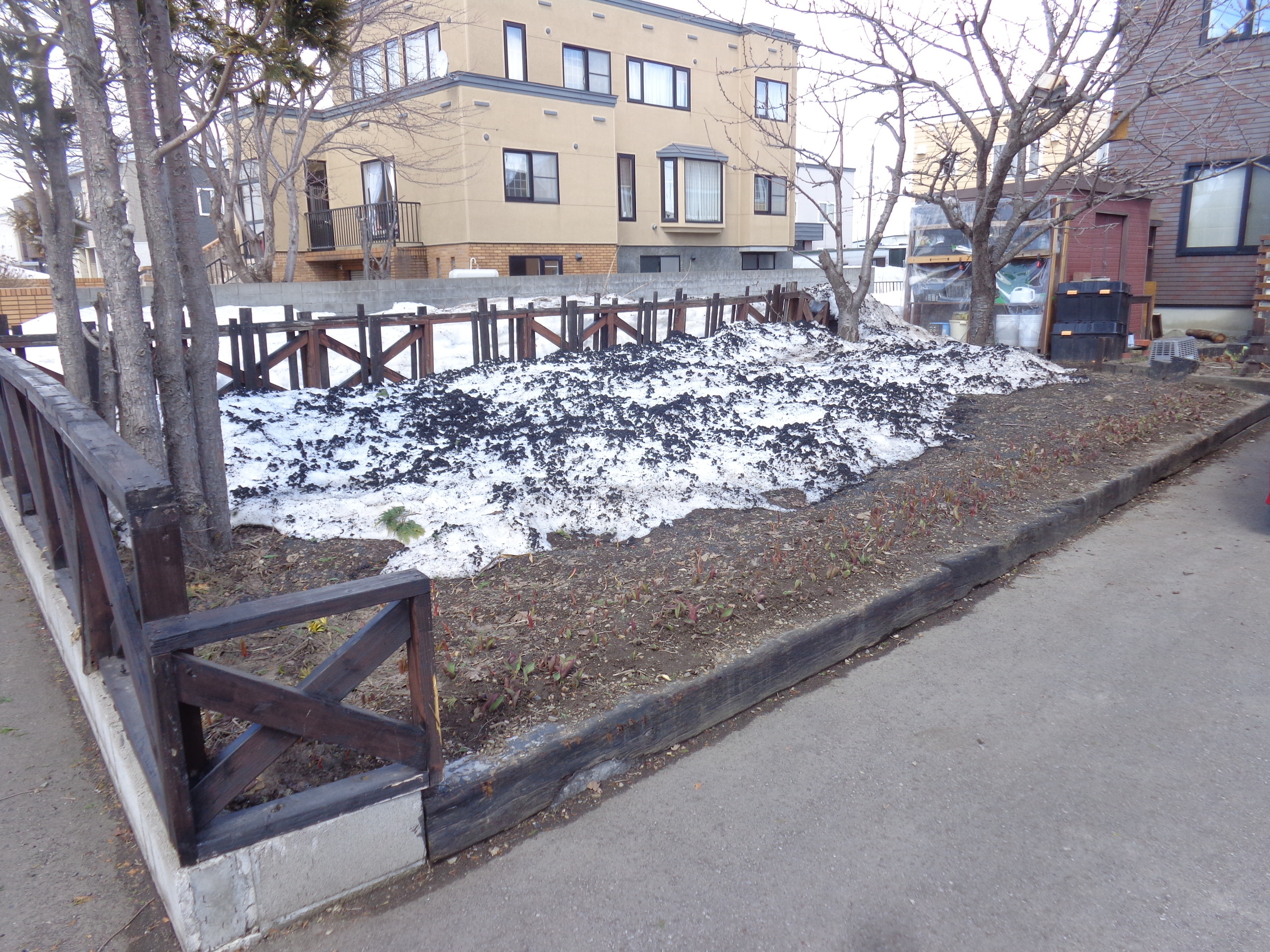 先週は三日かけて畑の雪割リ作業をして、そのあとにもみ殻くんたんを撒きました。