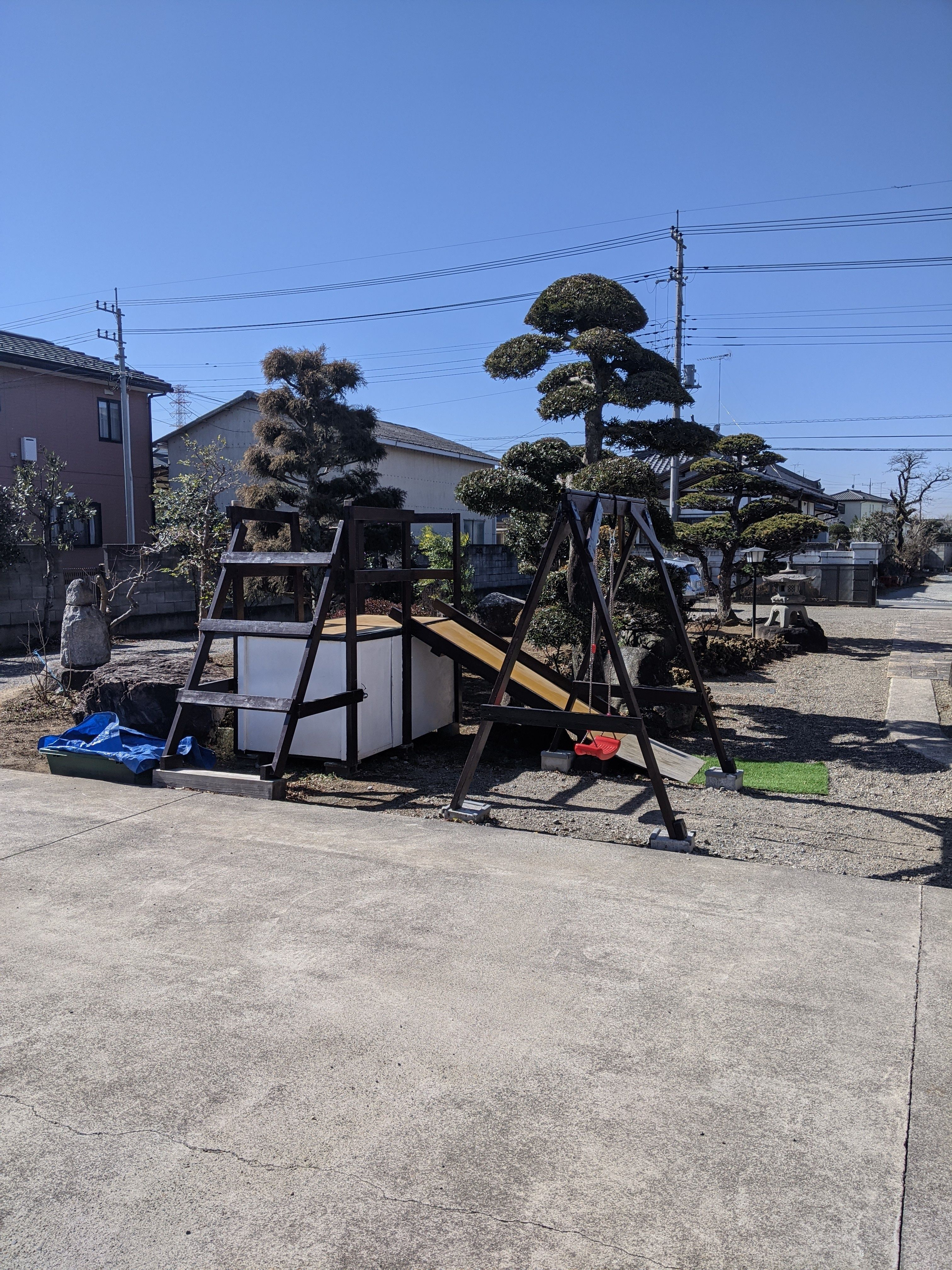 木材で、こんなにステキな滑り台とブランコができるんですね〜😱💦