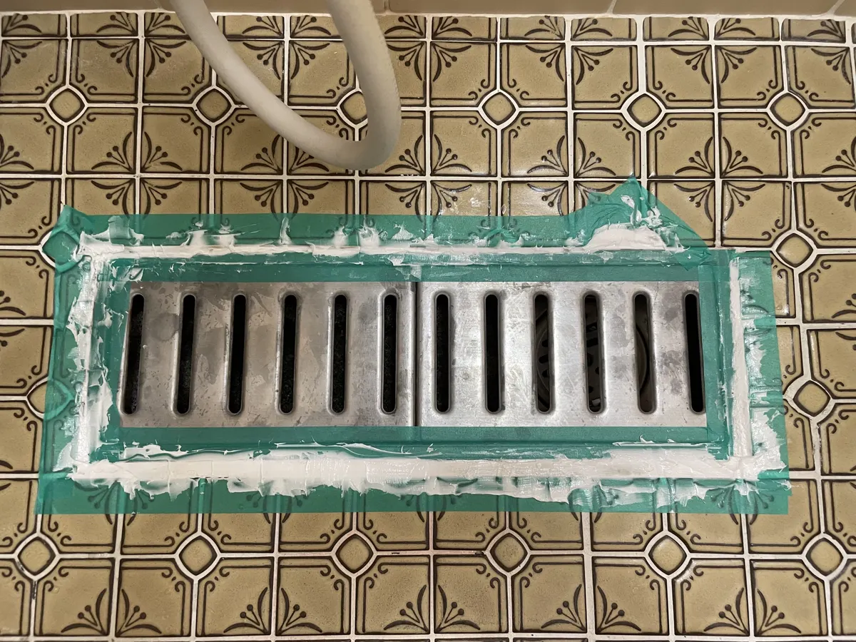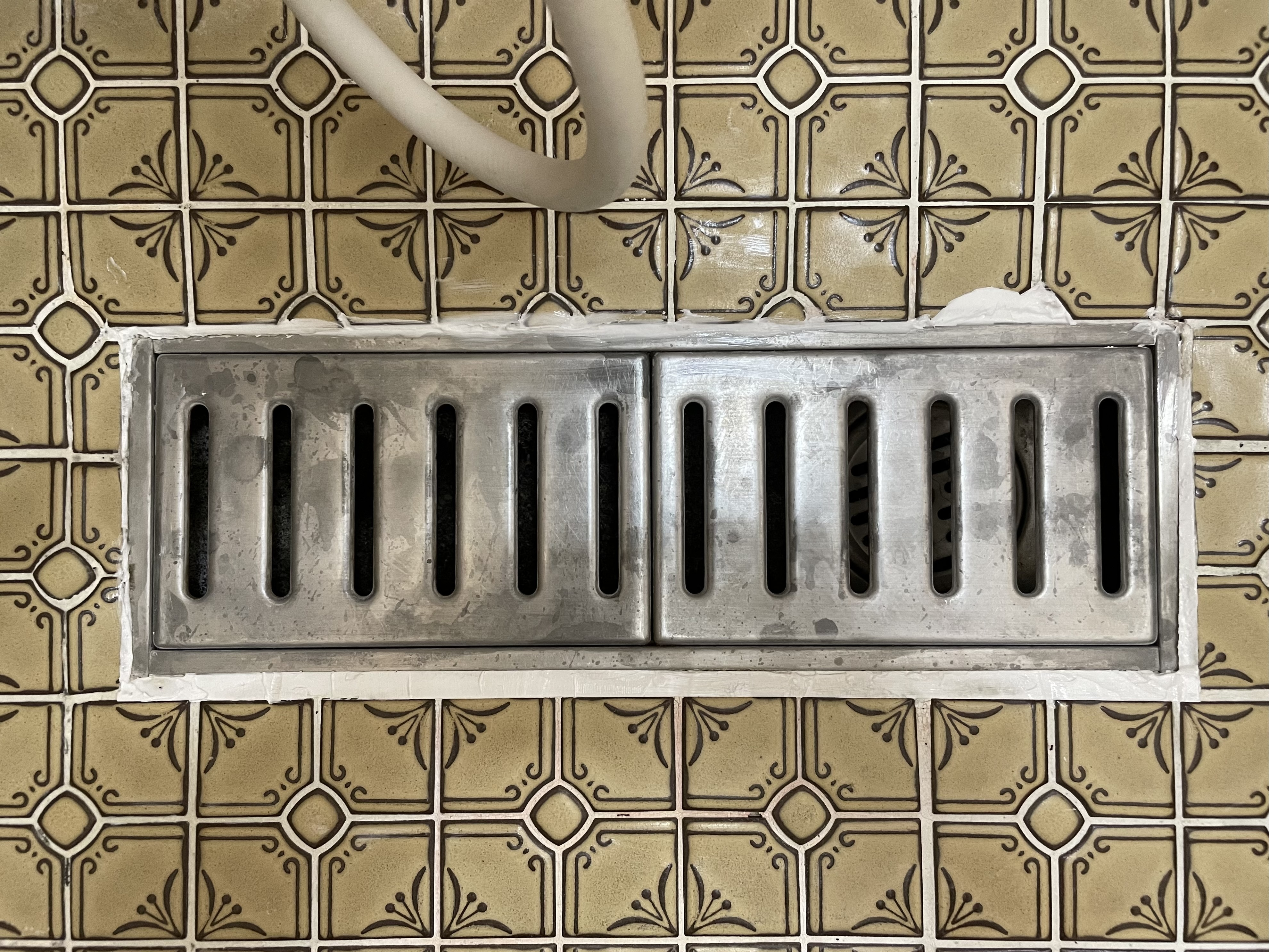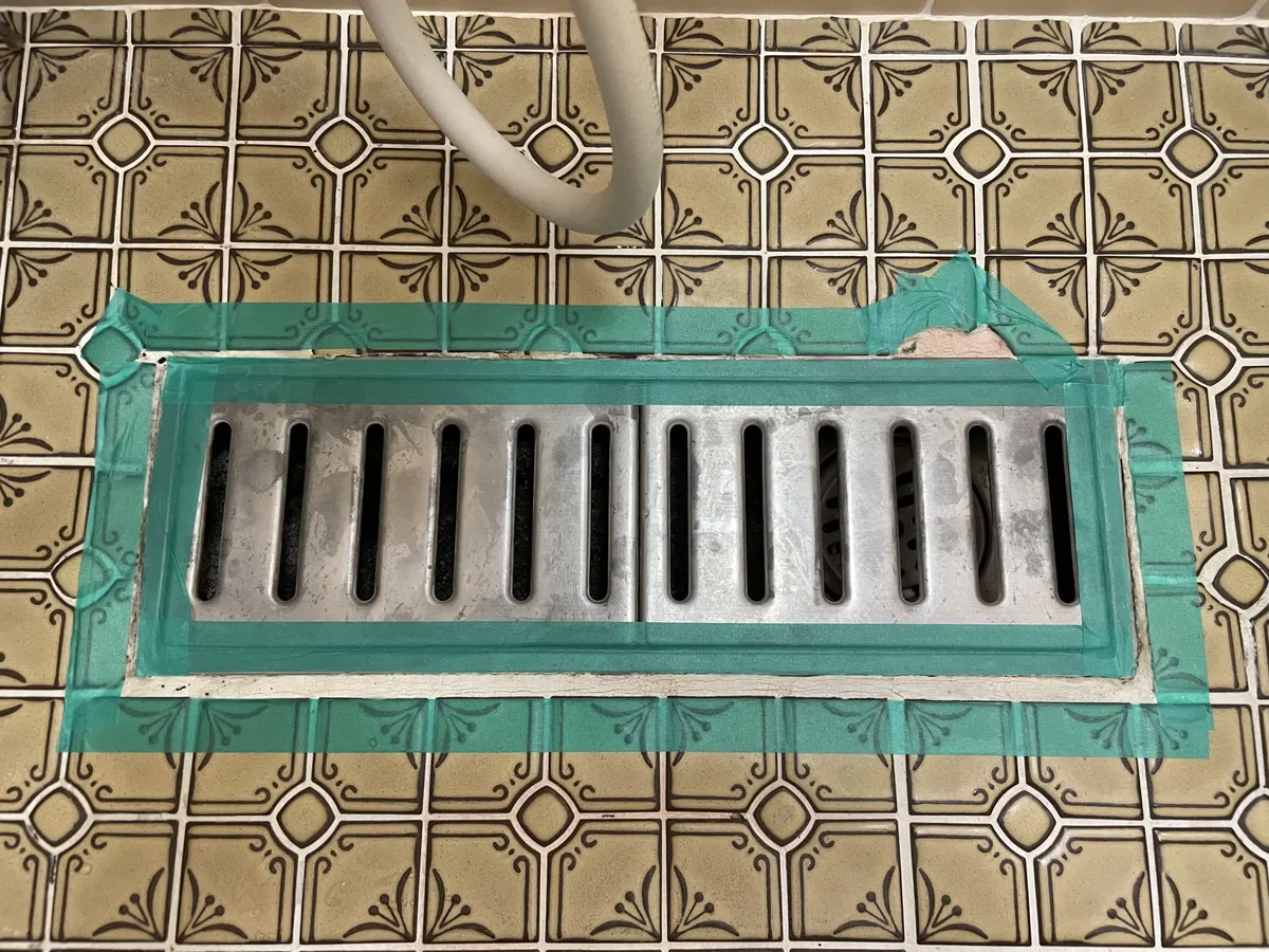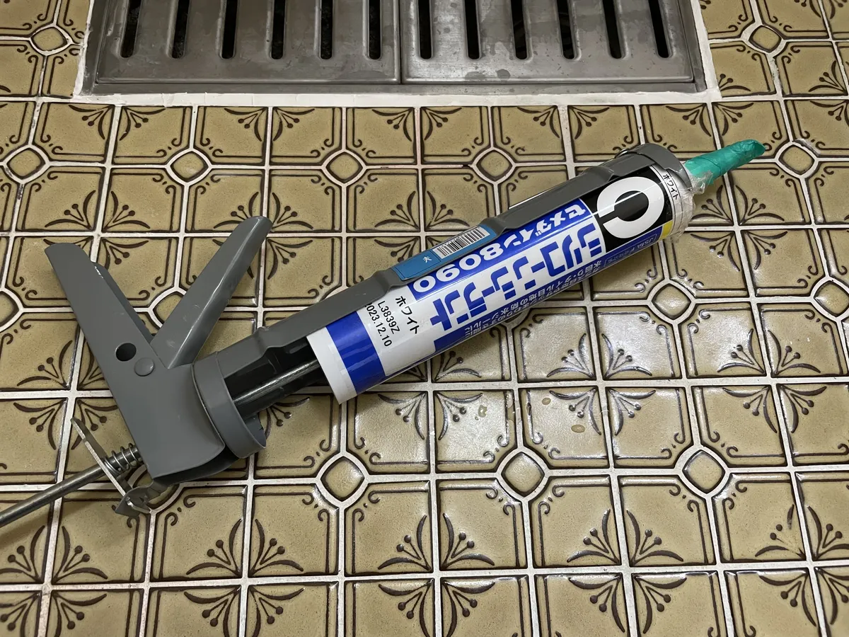 4月に目地材で埋めた排水溝周り(リンク→ https://diy-square.cainz.com/announcements/v20eopnnijds6hbk )、整ったはずの目地材も乾燥からなんでしょうね、細かなひび割れが見えたので、コーキング処理する事に。