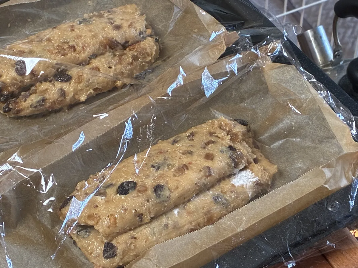 洋酒に浸かりまくりのフルーツ、大人の味のシュトーレンに仕上がるわぁ😋🥃🍇✨
