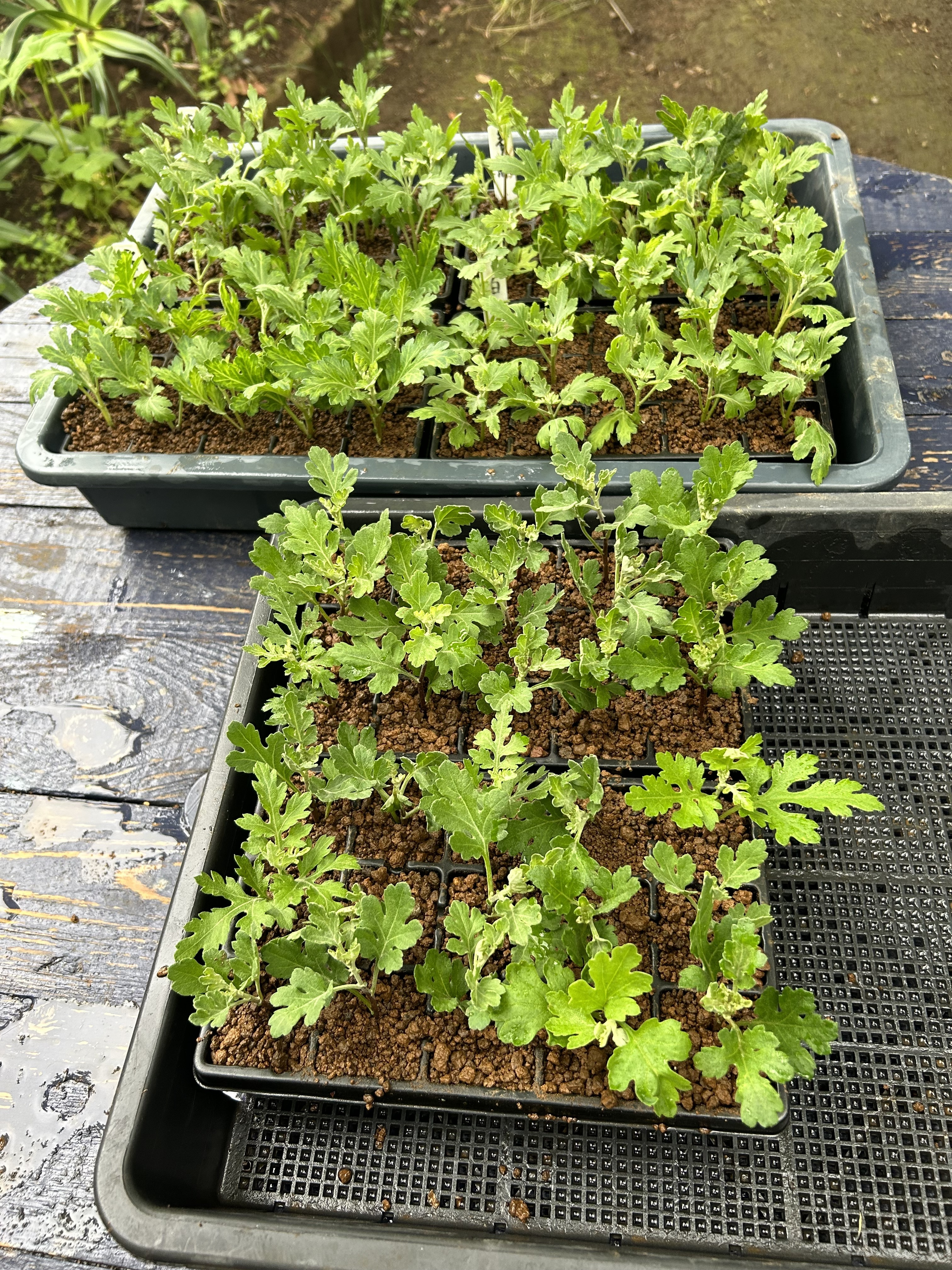 トップ > グリーン > 小菊の挿し芽🌱 チャコ 2024/05/07 15:56 小菊の挿し芽🌱 今日は小菊(まわるくなる菊)の挿し芽をしました🌱 毎年知人が秋になると持って来てくれるのですが、去年いただいた鉢からたくさんの新芽🌱が出ていたので挿してみました😁 うまくいくかわかりませんが秋に綺麗に咲いてくれたらいいな😍 いいね 共有する 共有する X LINE リンクをコピー コメントする 1 件の返信 (新着順) ミュートしたユーザーの投稿です。 投稿を表示 ミモザ 2024/05/07 17:52 すごくたくさんありますね! みんなうまく咲くと豪華でしようね🌺👍 いいね 返信する ミュートしたユーザーの投稿です。 投稿を表示 チャコ 2024/05/07 18:55 ミモザ はい。全部で6種類を15本づつ挿しました🌱 5本くらいづつで良いので発根してほしいです😁 いいね 返信する