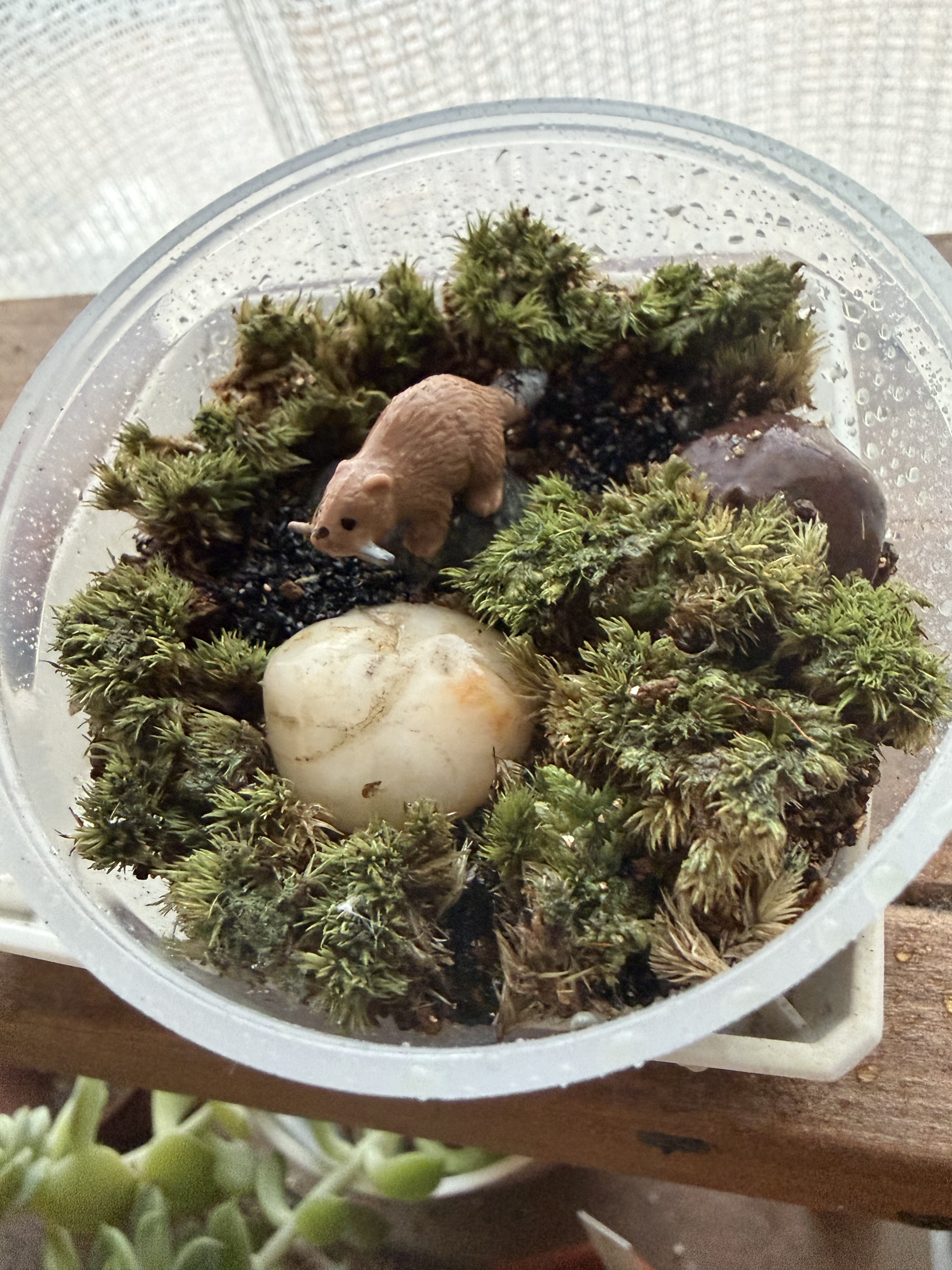 トップ > グリーン > その他 > 苔テラリウムその後 あかさん 2026/01/31 16:51 苔テラリウムその後 カプセル苔テラリウムを作って一か月くらい経ったカプセル苔です♪ なんとか枯らさず育ってます☺️ お水はほとんどあげてなく、日に当たらない場所に置いてます😌 少し伸びてきたようです🥰 苔・テラリウム作品 いいね 共有する 共有する X LINE リンクをコピー コメントする 0 件の返信 (新着順)