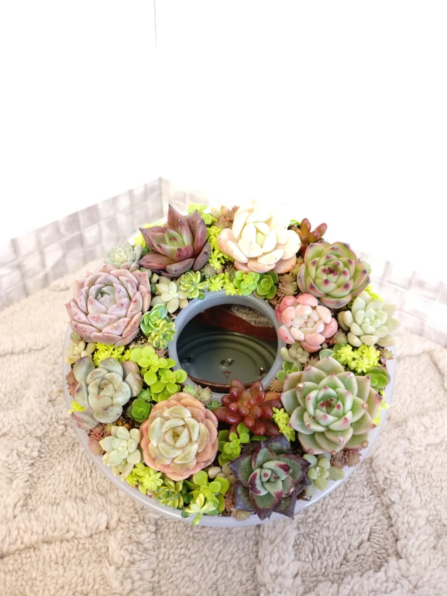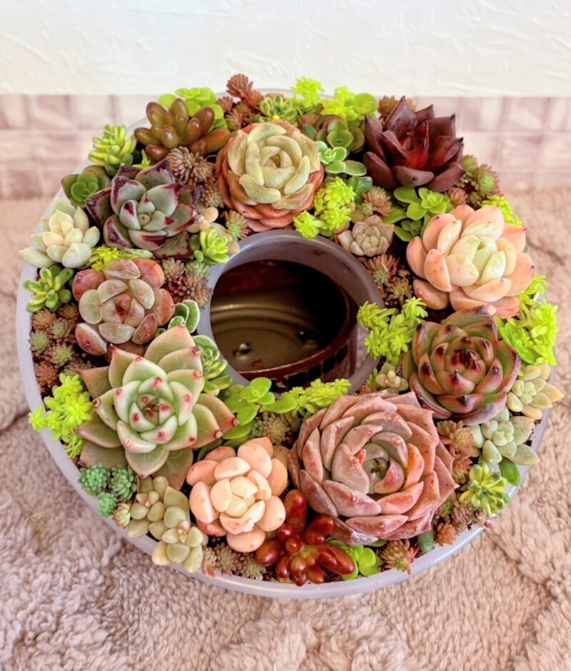 リースの多肉ちゃんの寄せ植えが凄く見ているだけでも幸せを感じます。😌🌸💕