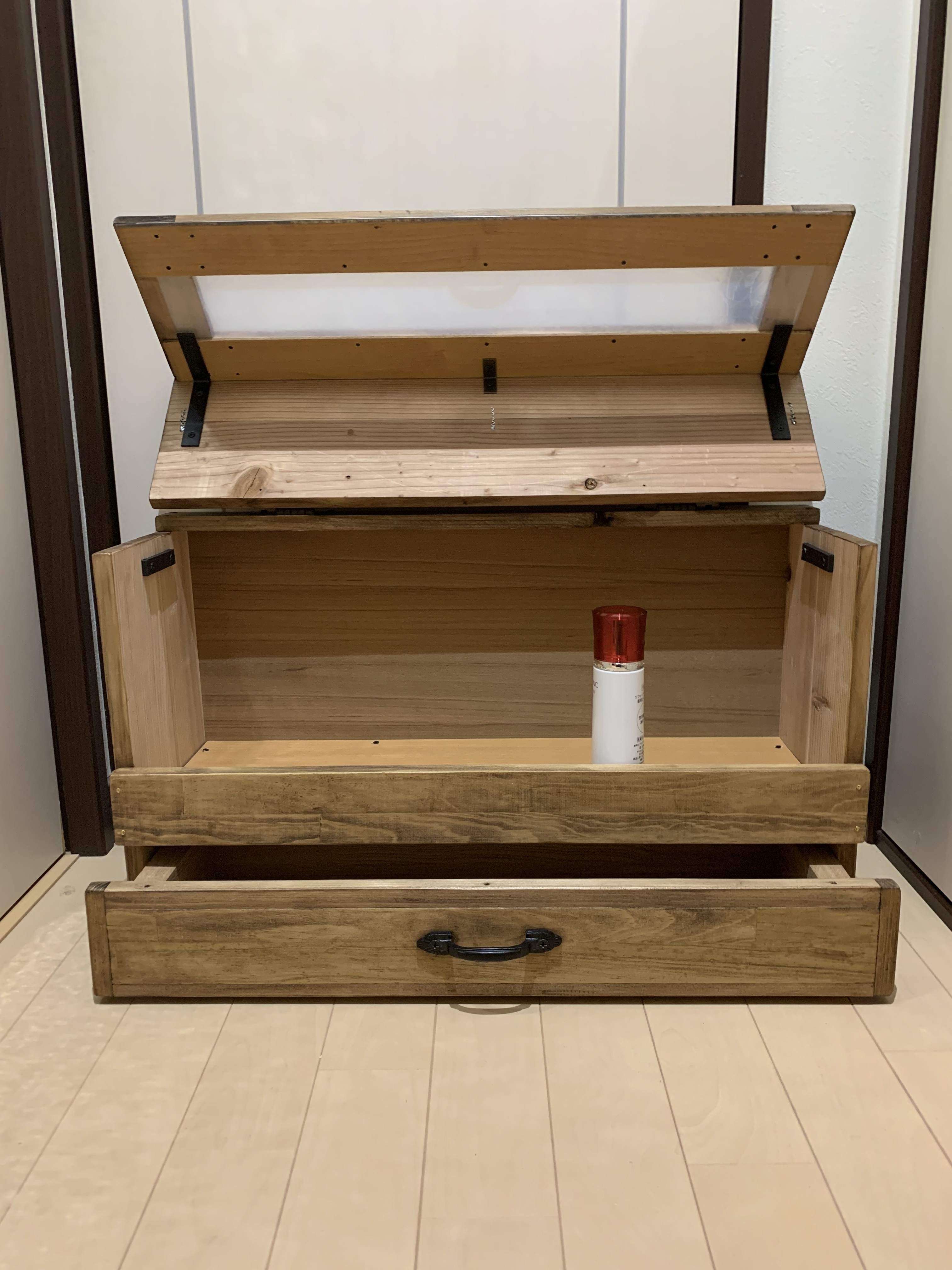 トップ > その他 > 想いを込めて「誰かに贈るもの」 CHIE☆ 2022/02/14 20:17 想いを込めて「誰かに贈るもの」 友達に頼まれていた脱衣所チェスト上に置く化粧BOXです✨ 先日、皆さんにアドバイスを頂き、やっと出来上がりました‼️ ありがとうございました😊 取りやすいように ガバッと開けられる蓋にしました 引き出しはキャスターを付けてあります😊 いいね 共有する 共有する X LINE リンクをコピー コメントする 7 件の返信 (新着順) ミュートしたユーザーの投稿です。 投稿を表示 あにー 2022/02/18 21:46 最初どこから開けるのか、秘密の扉か? と思いましたが、 「開け~~ごま!」こう開くときたか、ステキな上蓋です。 使い勝手も良さげです。 いいね 返信する ミュートしたユーザーの投稿です。 投稿を表示 CHIE☆ 2022/02/19 09:27 みーたんさん 「開け~~ごま!」🤣 ガバッと開く蓋は手前の物も奥の物も見やすいし取りやすいですよ😊 いいね 返信する ミュートしたユーザーの投稿です。 投稿を表示 ふーふーちゃん 2022/02/18 16:30 間に合って良かったですね。お友達ビックリするでしょうね。大物でしたね!💐 いいね 返信する ミュートしたユーザーの投稿です。 投稿を表示 CHIE☆ 2022/02/18 18:22 ふーふーちゃん さん 使いやすいと喜んでくれました😊 いいね 返信する ミュートしたユーザーの投稿です。 投稿を表示 Grass艹crown 2022/02/15 00:02 天井もガバッとデザインになったのね😆🙌✨ これ見せて貰って初めて気付くことだったけど、確かに同じくらいの背の高さの物が奥まで入ってたら、前面蓋の形で作ると取り出し難い💦 でもそれを使ってから気づくんじゃなくて、つくる前に気が付けるのが凄い😆👍✨ 実用性に富んだ大型収納、女3人分の化粧品もどんと来い💪💨 素敵な贈り物〜🎁✨ いいね 返信する ミュートしたユーザーの投稿です。 投稿を表示 CHIE☆ 2022/02/15 09:25 Grass 艹 crown さん ガバッと最高でしょ😊 撮影の為に背面を前面に付けたけど水道とコンセントの所に切り込みを入れないとだからまだ完成ではないのよね💦 いいね 返信する ミュートしたユーザーの投稿です。 投稿を表示 おださん 2022/02/14 22:05 思ったよりガバッと開いて びっくりしました!(笑) 素敵な見た目に負けないくらい 実用的で素晴らしいですー! いいね 返信する ミュートしたユーザーの投稿です。 投稿を表示 CHIE☆ 2022/02/14 22:37 odasan さん チェスト上なのでガバッとじゃないと奥の方が取りづらくなっちゃうかなって思ったんですよ😊 いいね 返信する ミュートしたユーザーの投稿です。 投稿を表示 べるん 2022/02/14 20:43 とっても素敵✨です。 収納も沢山出来て、大作ですね😀 キャスター付きで、使い勝手が良くてお友達にも喜ばれますね💓 いいね 返信する ミュートしたユーザーの投稿です。 投稿を表示 CHIE☆ 2022/02/14 22:34 べるんさん チェストの半分の奥行きで作ったので引き出しにキャスターを付けたんです😊 いいね 返信する ミュートしたユーザーの投稿です。 投稿を表示 aoi 2022/02/14 20:42 凄い‼️😳 使い易いようにアイデアが詰め込まれたデザインですね👏 贈るお相手を思いやる気持ちが成せるワザ💖 こんなに素敵なお化粧BOX貰えたら嬉しいこと間違いなしです✨🎶 いいね 返信する ミュートしたユーザーの投稿です。 投稿を表示 CHIE☆ 2022/02/14 22:30 Ta29 さん 女の子3人もいるので大容量にしましたよ😀 いいね 返信する ミュートしたユーザーの投稿です。 投稿を表示 ゆー 2022/02/14 20:29 ガバッと開いて使いやすそう👍お友達絶対喜びますよ😊 いいね 返信する ミュートしたユーザーの投稿です。 投稿を表示 CHIE☆ 2022/02/14 22:27 ゆーさん チェストの上に置くので普通の蓋だと取りづらいと思いガバッにしました😊 いいね 返信する